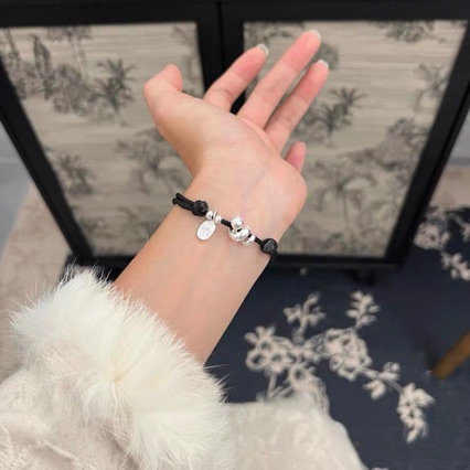 オリジナルキティベル付きワインレッド編み込みブレスレット、女性用、キュートで多用途、美白ブレスレット、ファッショナブルで多用途