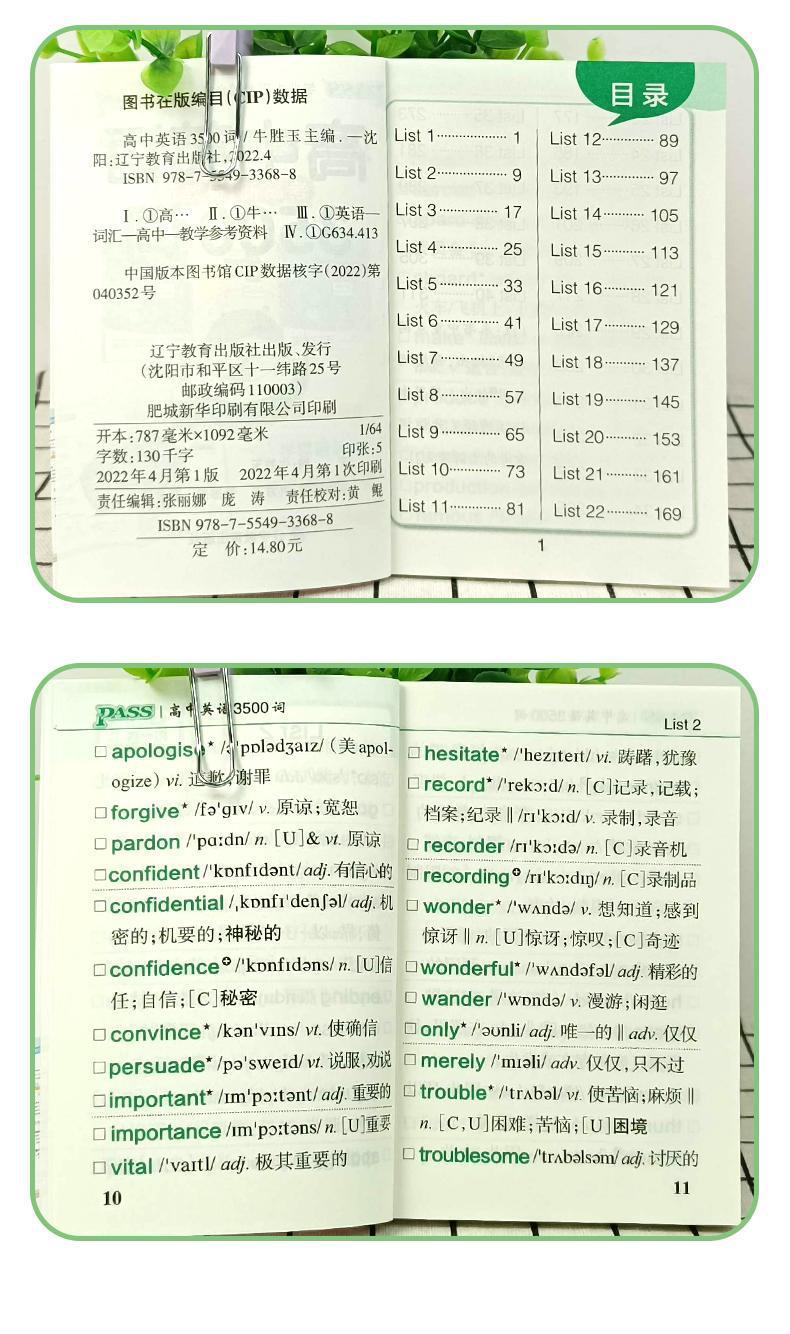 Qbookポケットブック高校英語語彙必須3500語乱序版単語マニュアル知識点パンフレット