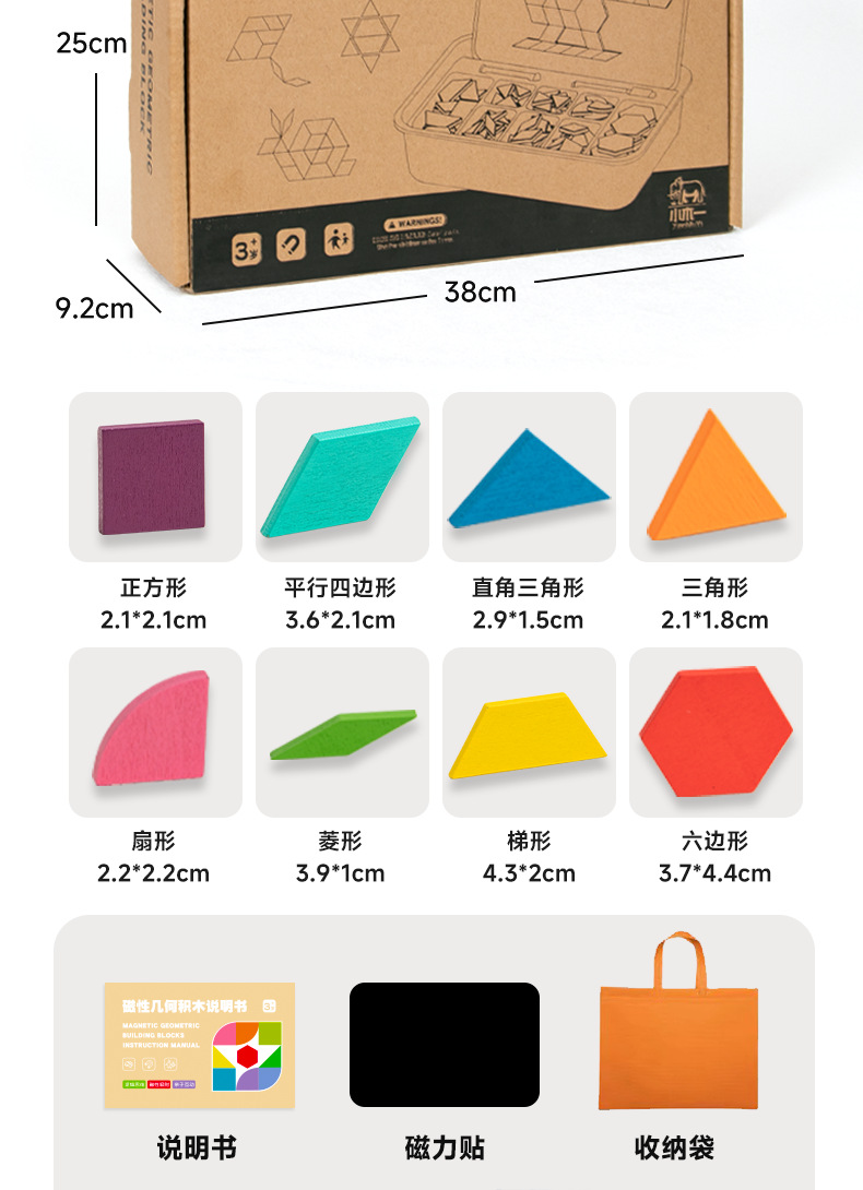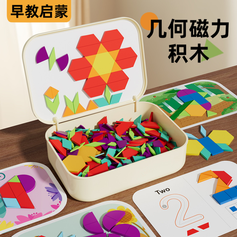 2025新款磁力七巧板几何积木片智力拼图磁性儿童幼儿园益智玩具