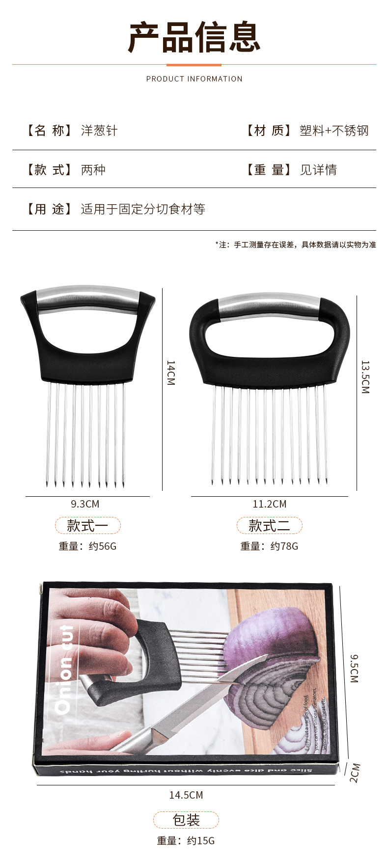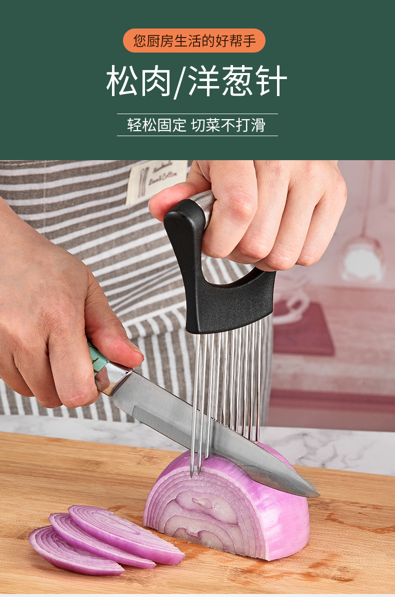 切洋葱神器防辣辅助器不锈钢切肉切菜固定器柠檬切片器蔬菜松肉器