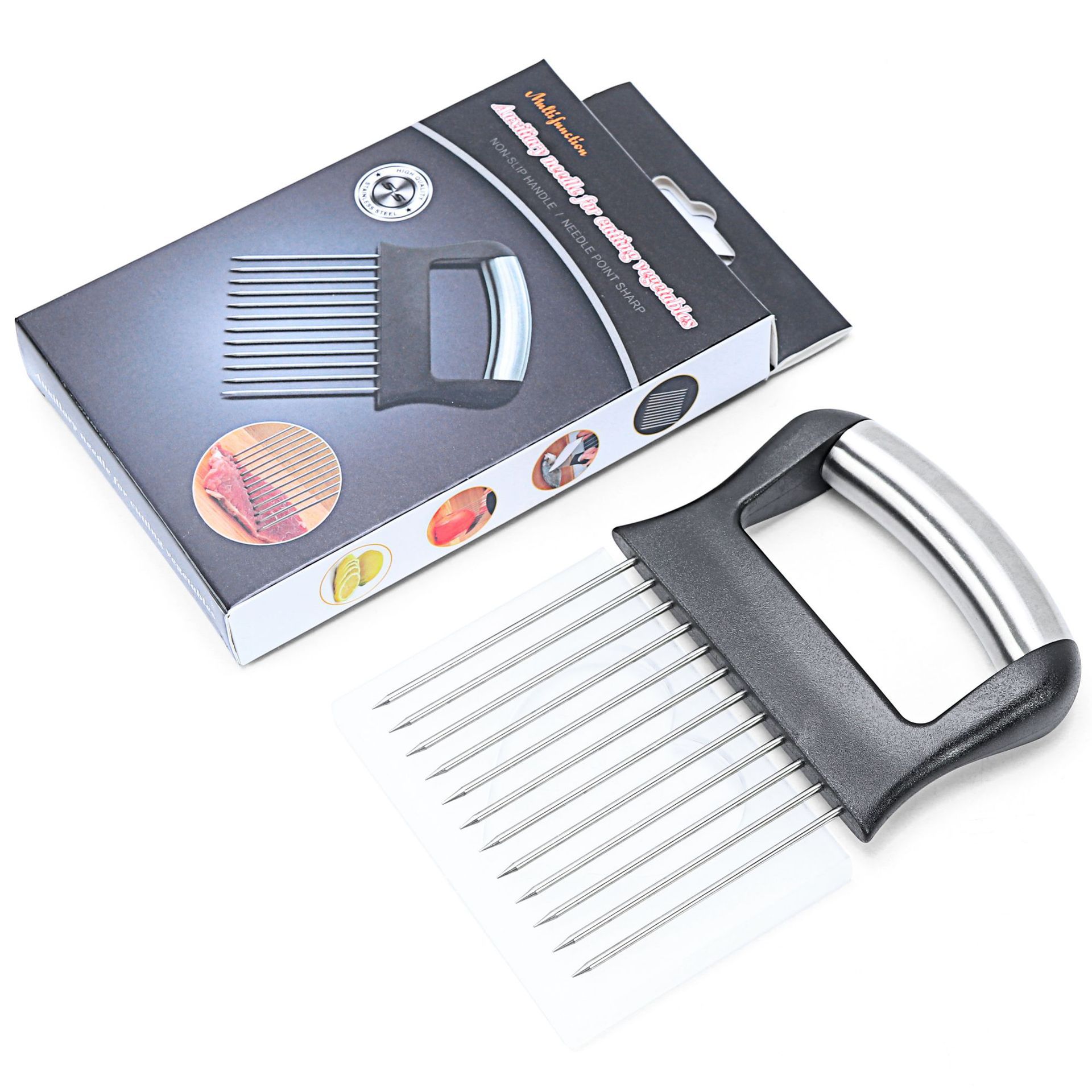 ステンレス304肉切り針、レモンスライス、ステーキ柔らかくするツール、肉軟化針、玉ねぎフォーク、野菜切り、手保護固定具