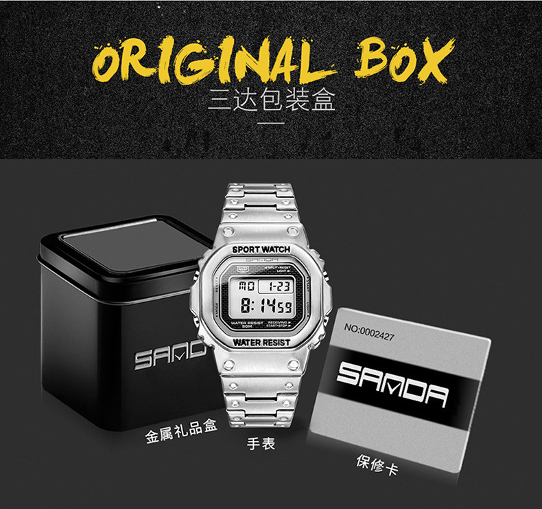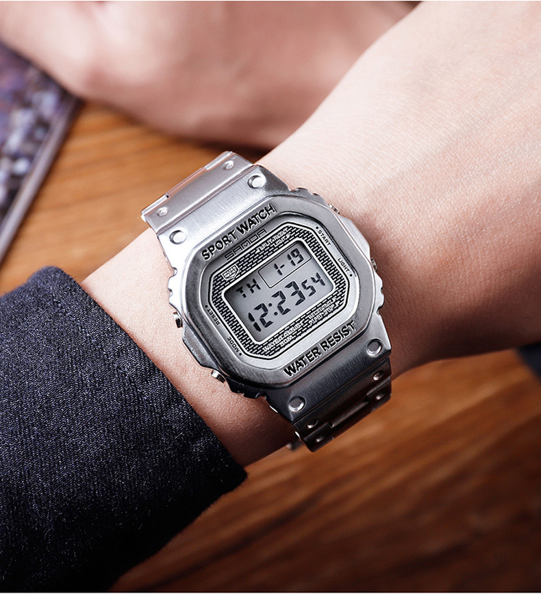 専門店の正規品腕時計多機能角型単芯鋼帯電子時計ファッション運動手灯目覚まし時計ビジネス