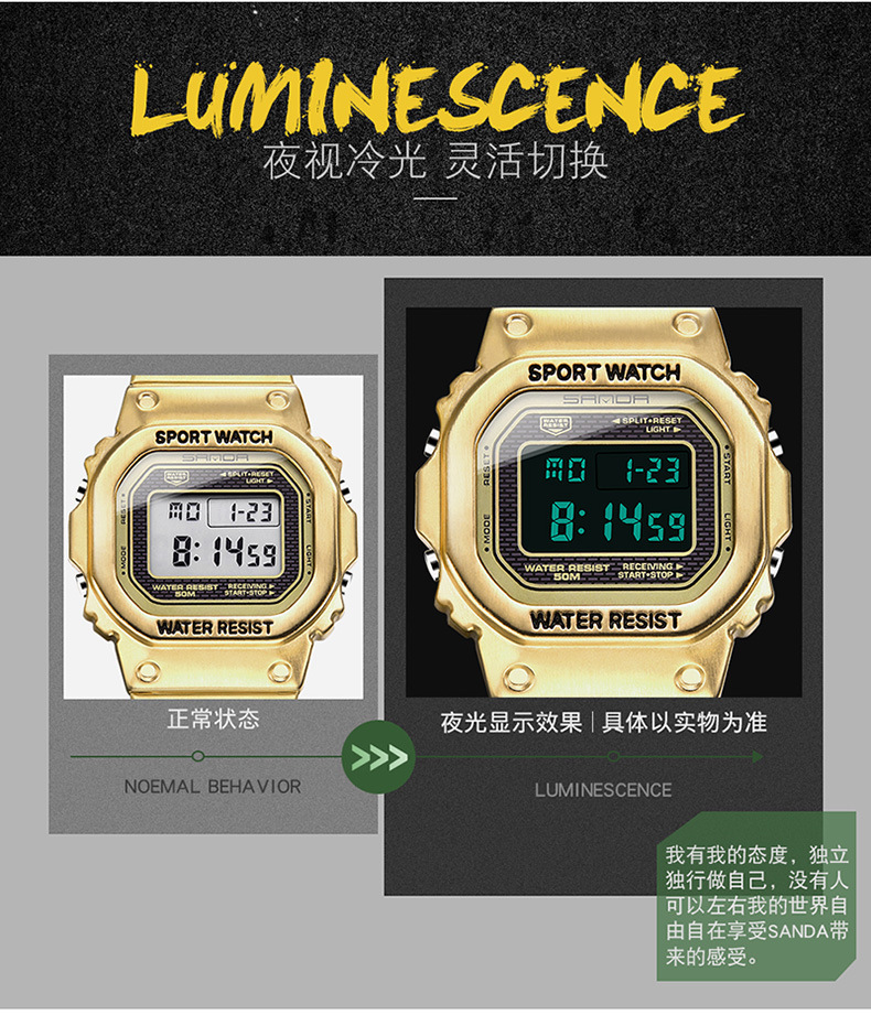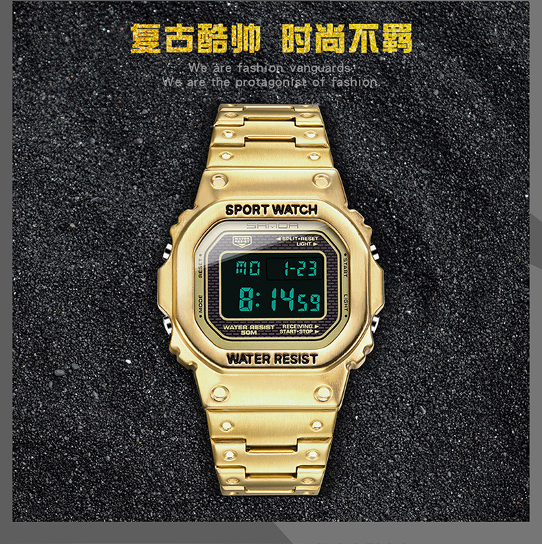 腕時計の男性の金の2024新型のファッションの潮流の小さい四角の電子の屋外の運動の夜光の防水の個性のデジタル式
