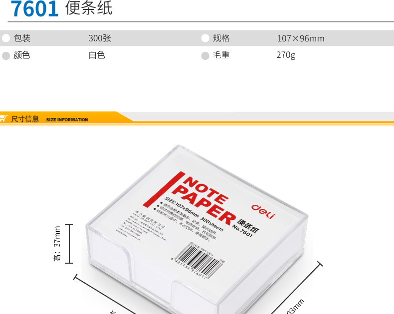 得力7601便箋紙メモ紙箱付箋箱107*96 (箱) 空白メモ紙事務