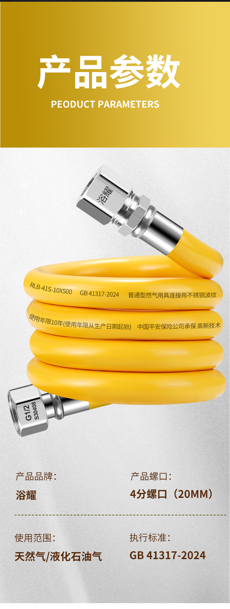 ステンレス製ガス管304ベローズ家庭用天然ガスガスコンロ接続管金属防爆高圧管