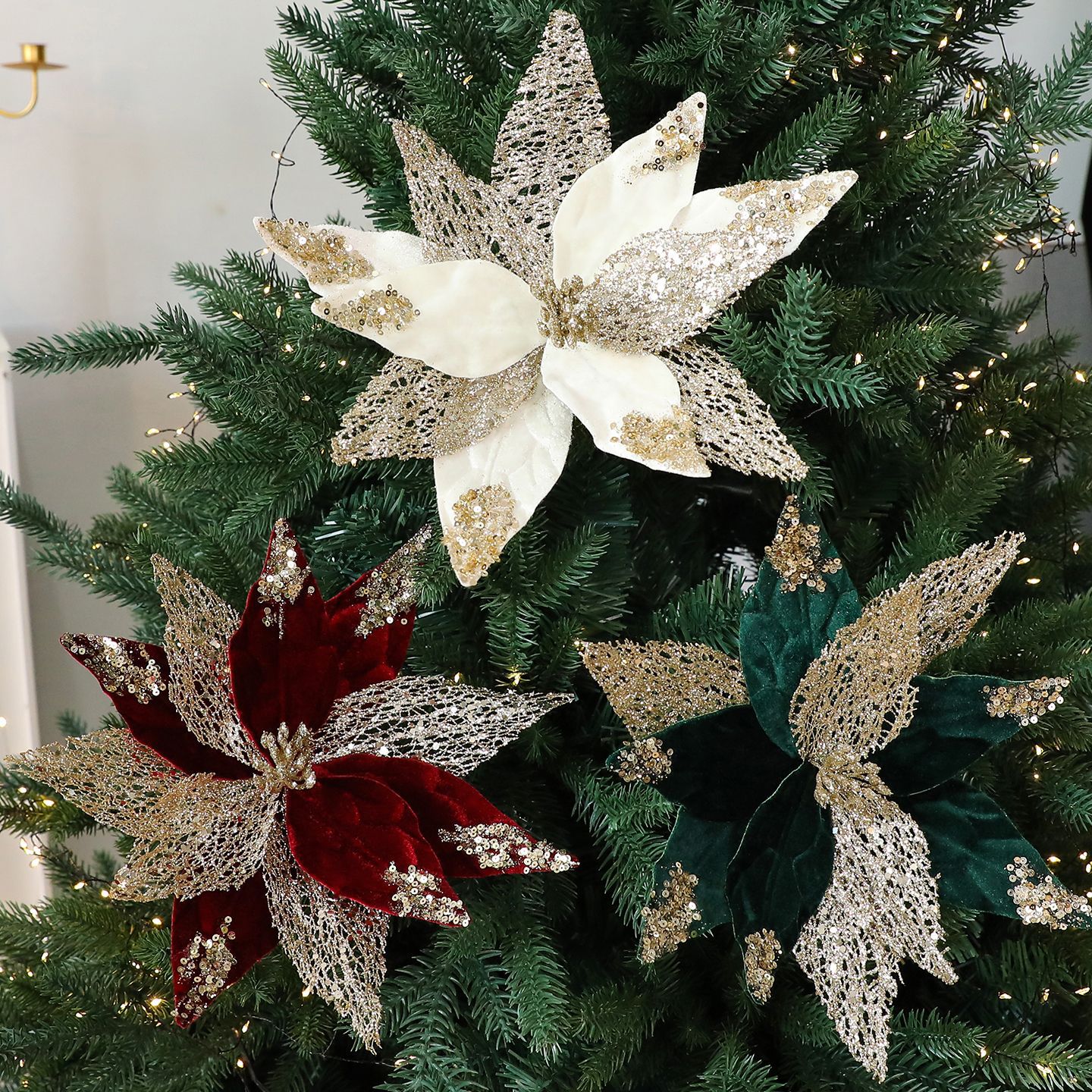 スパンコールフラワー造花クリスマスフラワーメッシュ生地フラワーアレンジメント装飾装飾品ベルベットクリスマス装飾品卸売