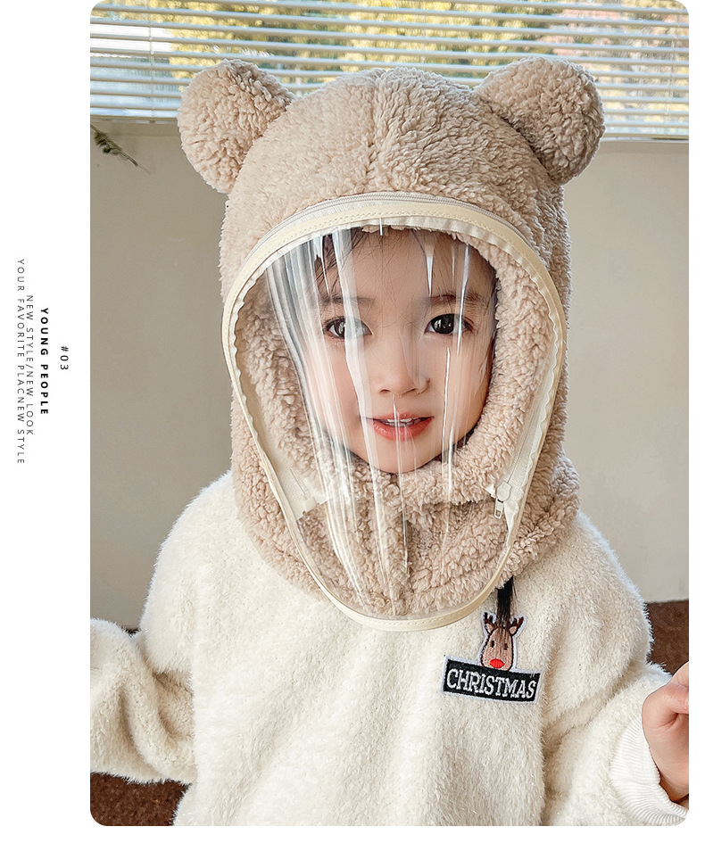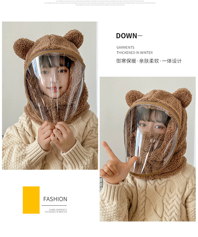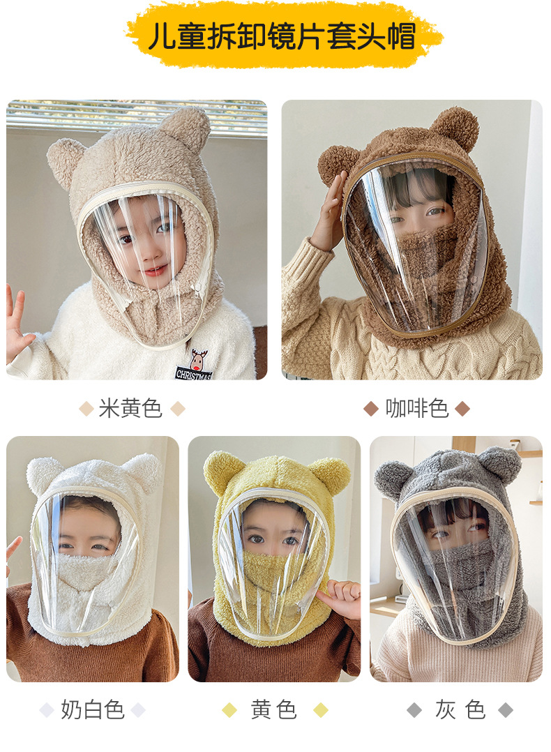批发专用儿童帽子防风帽冬围脖一体帽带面罩护全脸骑车小熊套头帽
