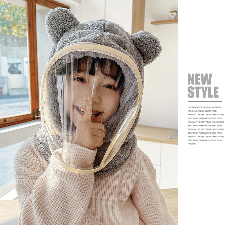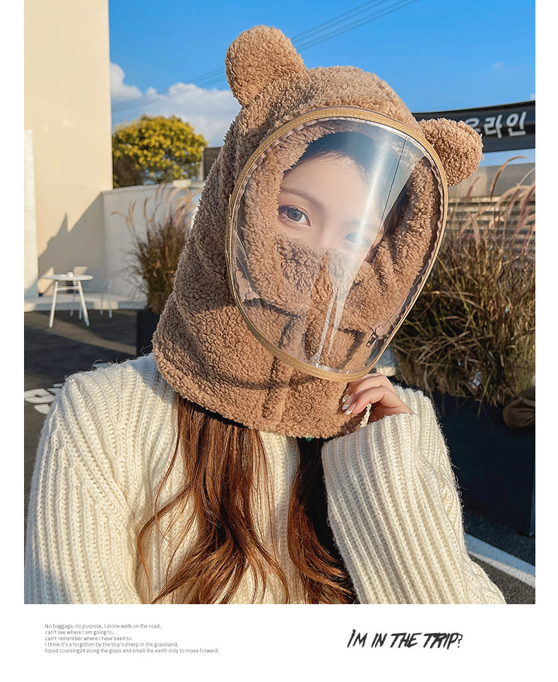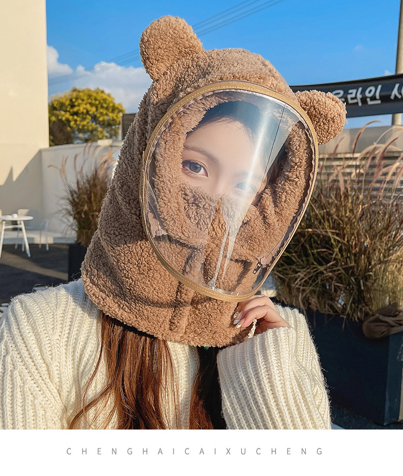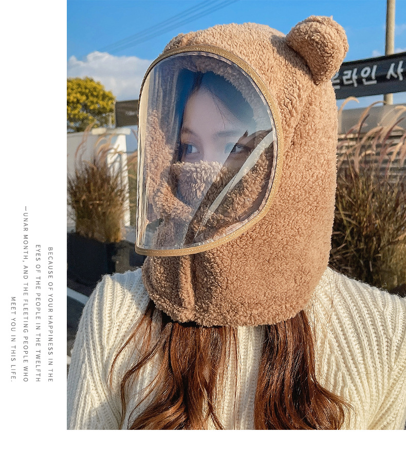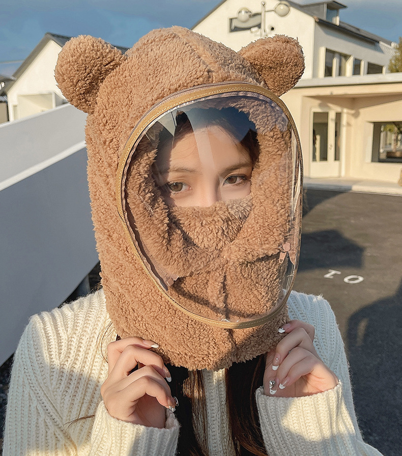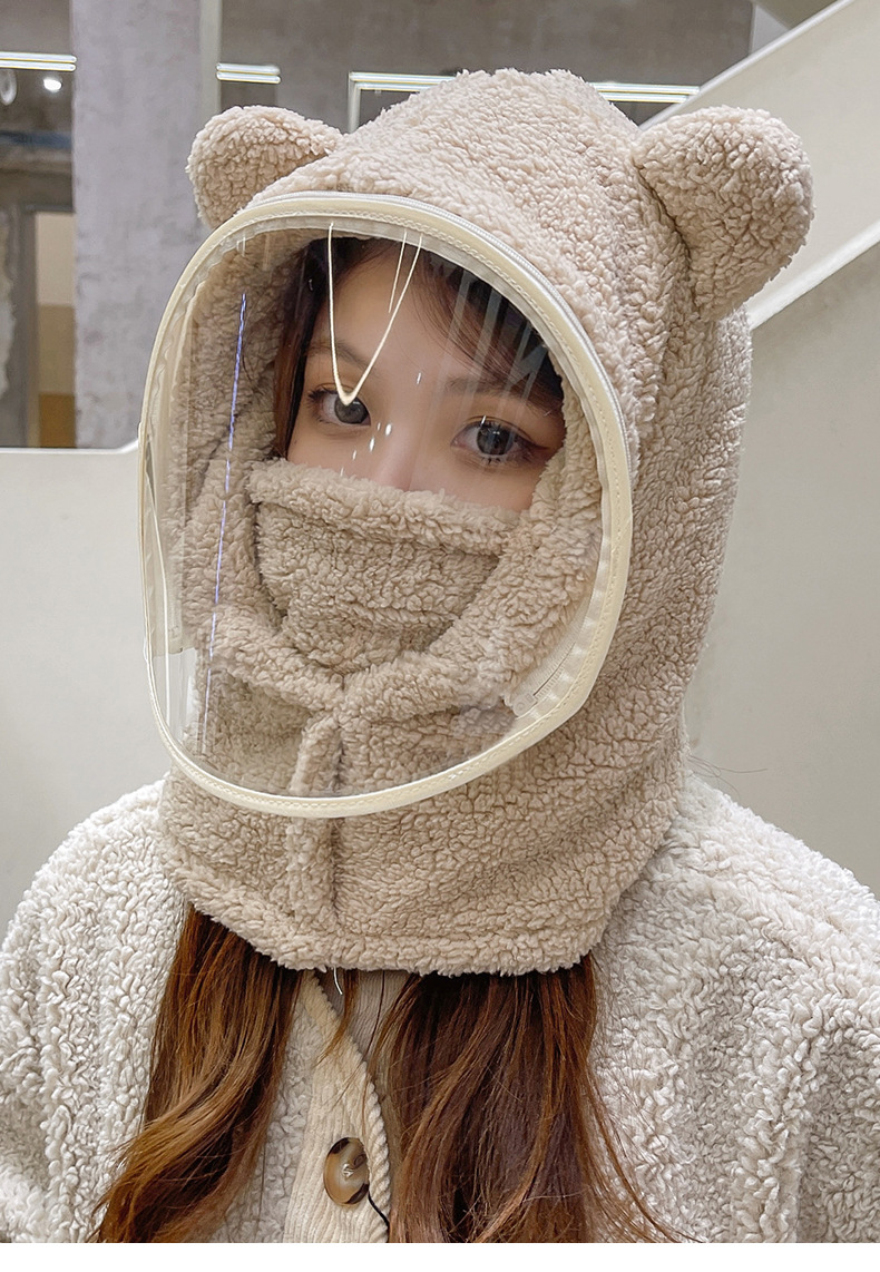 帽子女性冬防風帽子学生電気自動車保温防風マスクかわいいベアーが首を囲んで帽子をかぶっている