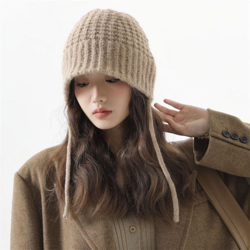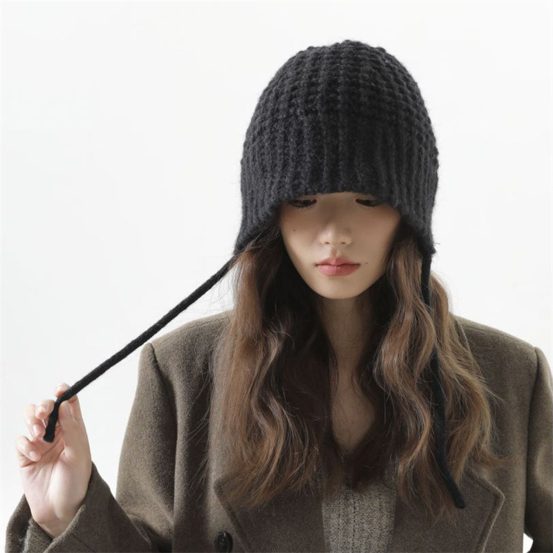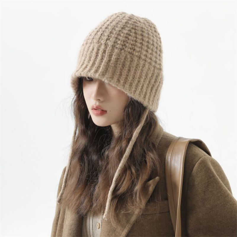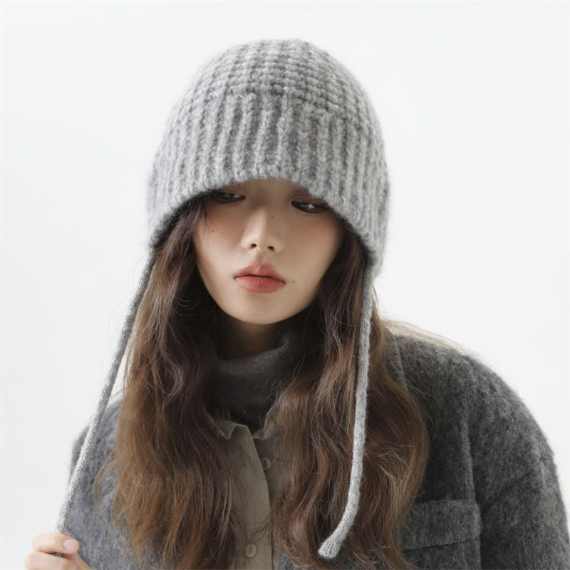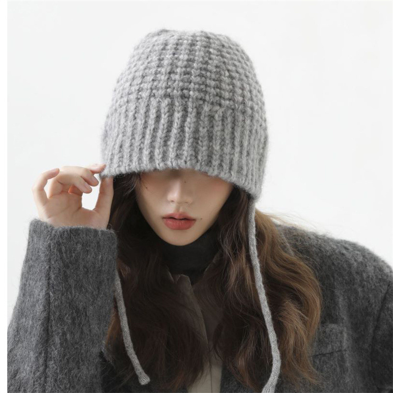 大头围显脸小毛线帽女秋冬季百搭可爱系带针织帽保暖护耳雷锋帽子