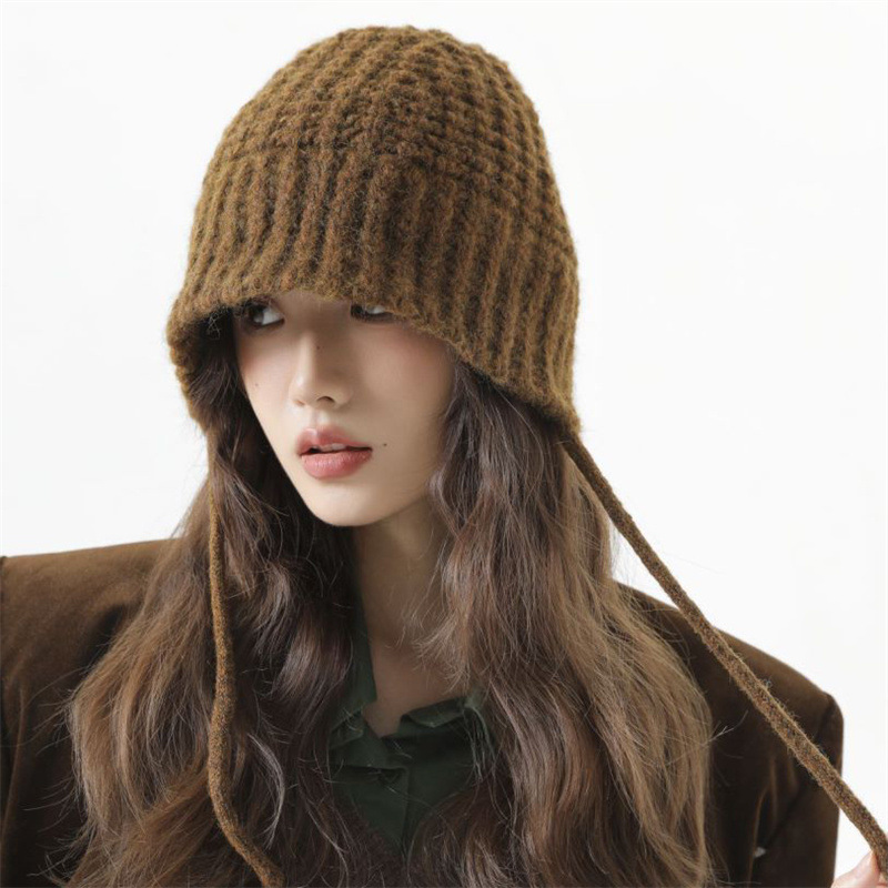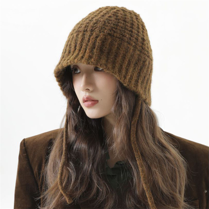 希菲 秋冬渔夫帽2025新款针织毛线帽美拉德水桶帽防风护耳帽批发