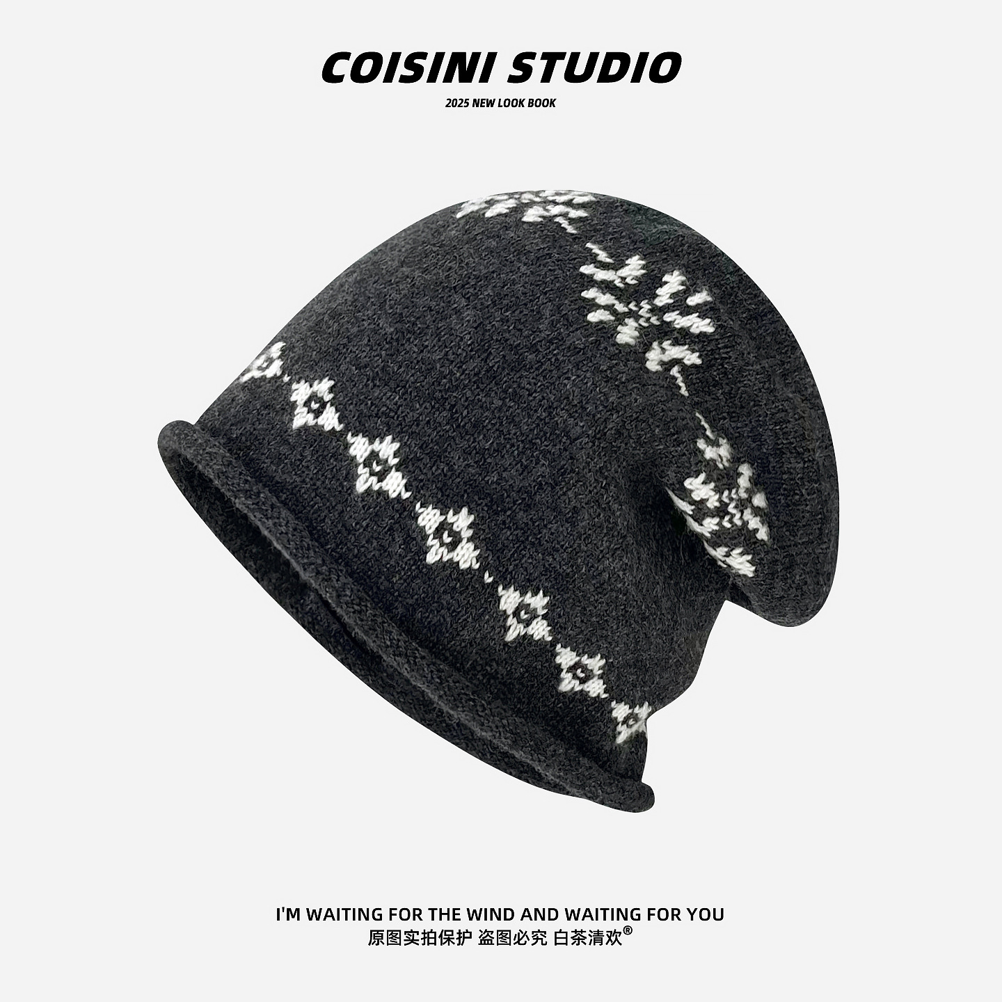 2025新款费尔岛提花冷帽女秋冬卷边堆堆帽时尚百搭显脸小针织帽子