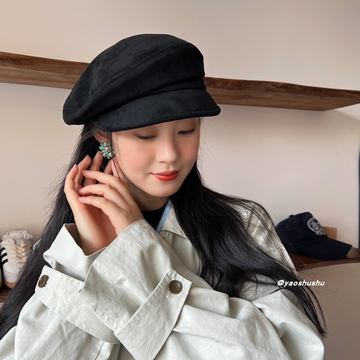 fever同款(麂皮绒版)秋冬百搭显脸小短檐马术礼帽贝雷帽报童帽