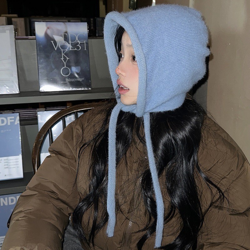 韩系ins帽子围巾一体保暖针织帽女冬季护耳巴拉克拉法帽毛线帽男