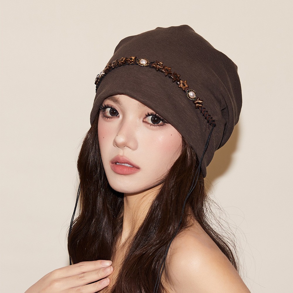 秋季百搭咖啡色堆堆帽女生覆古星星流苏冷帽宽松显脸小套头帽子潮