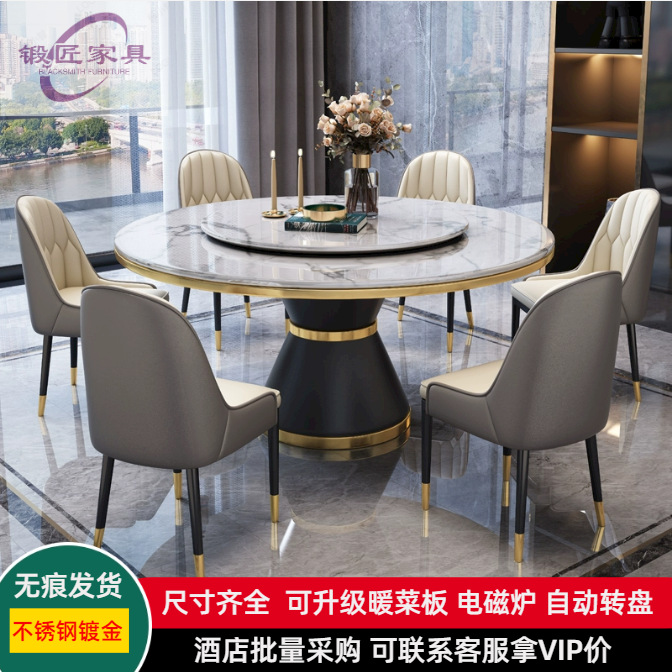 軽くて豪華な大理石のダイニングテーブルと椅子の組み合わせホテルラウンドテーブルモダンシンプルなスレート小型アパートメントターンテーブル付きダイニングテーブルホームm^