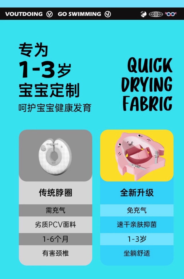 Voutdoing 幼児用脇の下浮き輪 生後6ヶ月以上の幼児用 空気を入れる必要なし 横転防止 蝶型脇の下浮き輪