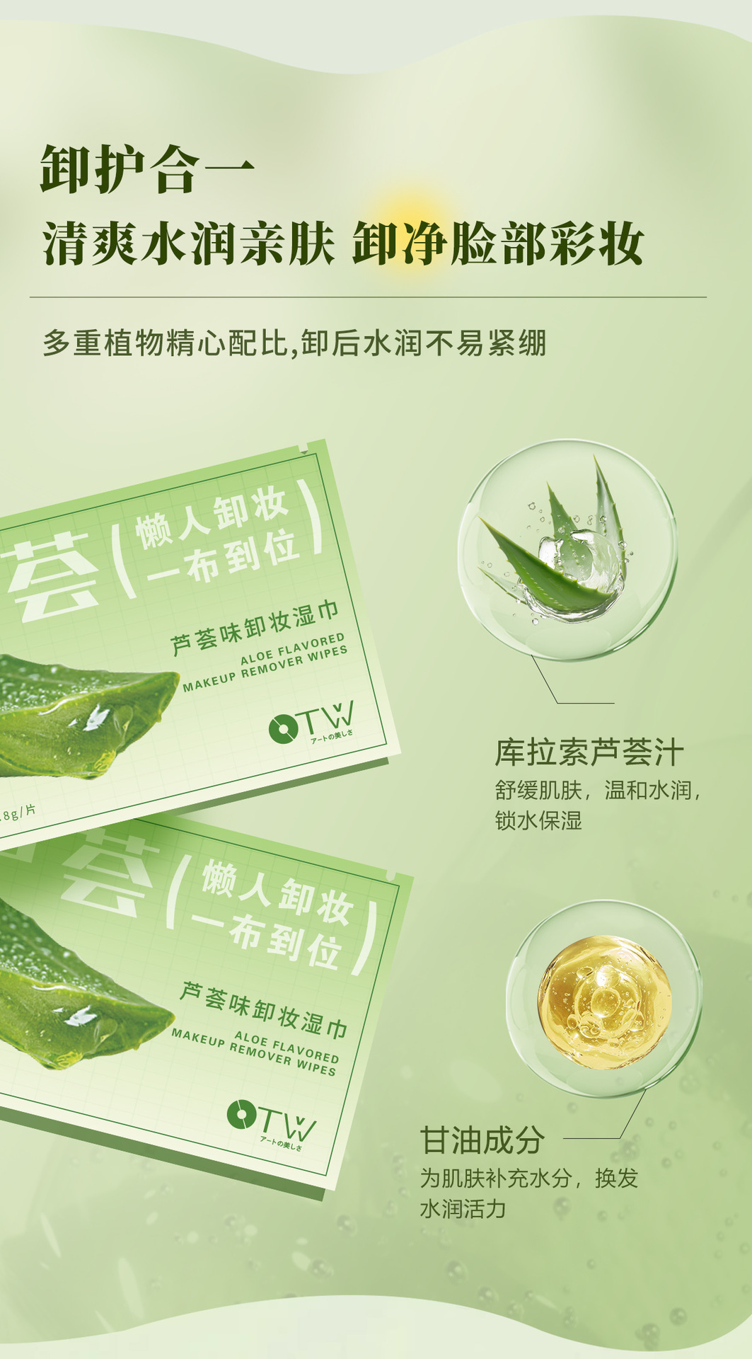 OTWアートの美しさは、肌を潤し、化粧を落とします。
