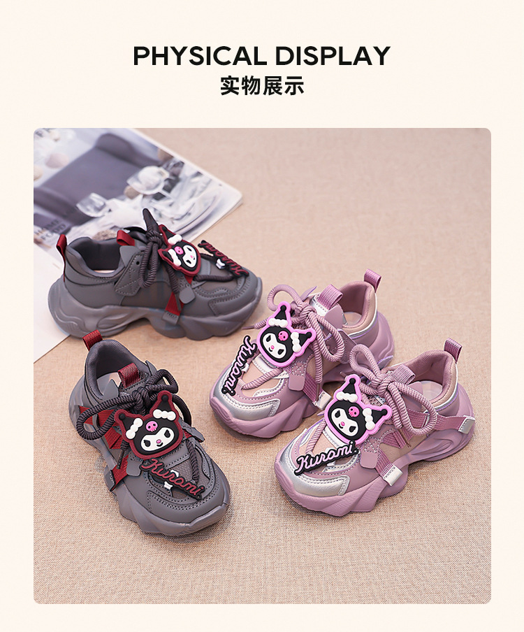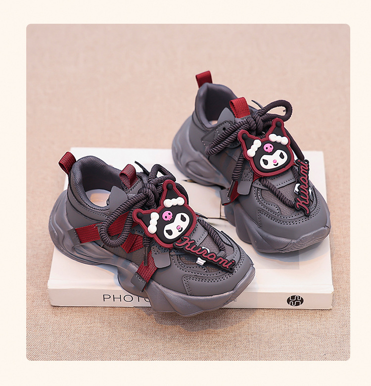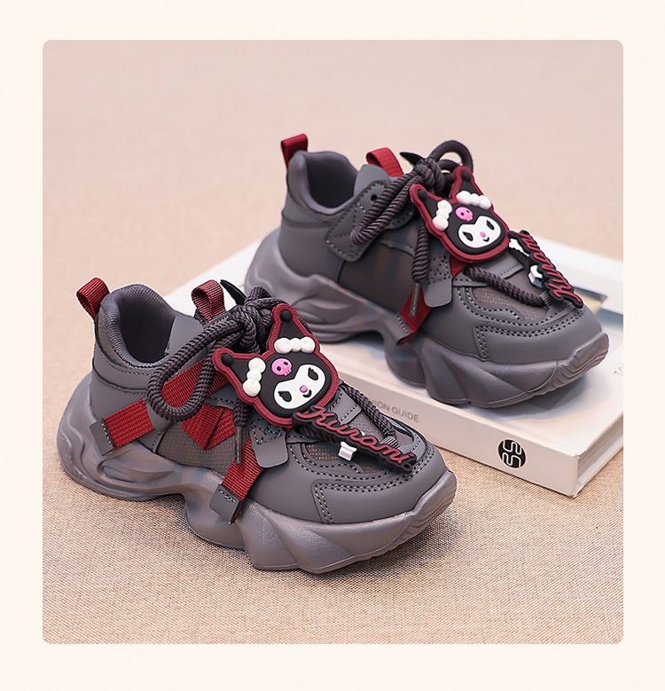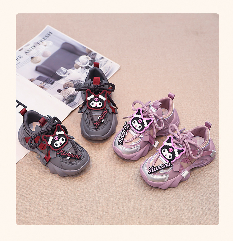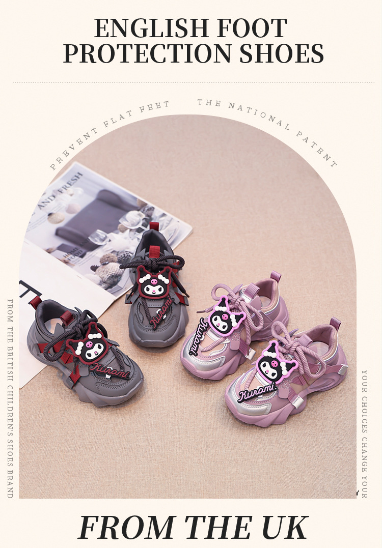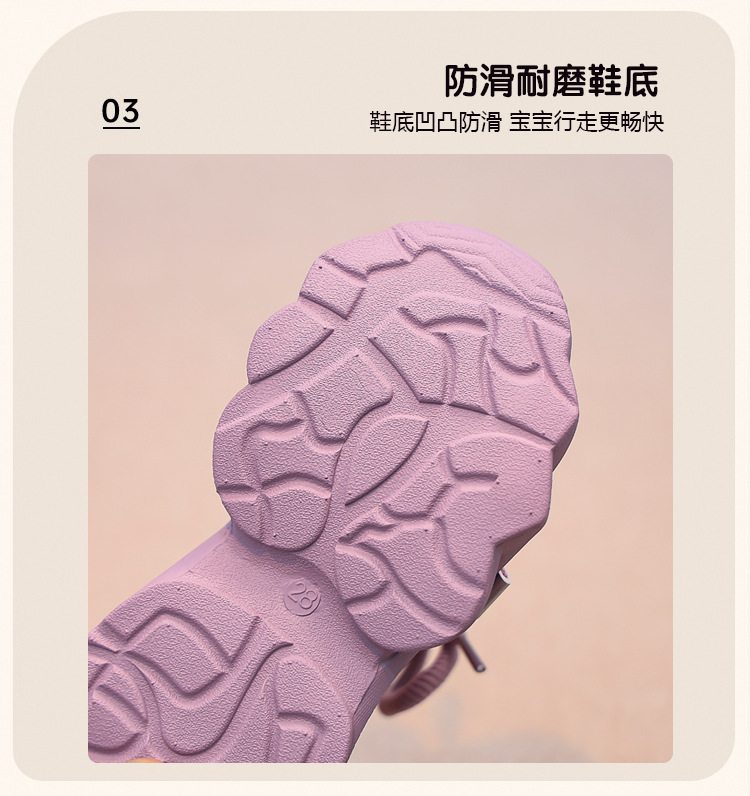 子供の皮の面のクロミの皮の面の運動靴のストラップの2024秋冬の新型の柔らかい底の女の子のランニング靴の百合のファッション