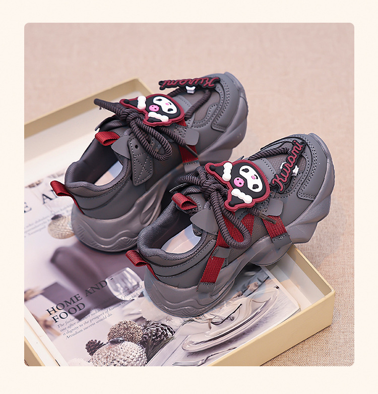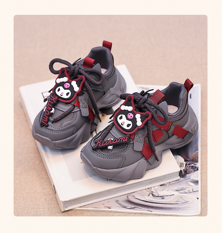 女の子の回転ボタンのお父さんの靴2023秋冬の新型の厚い底の滑り止めの百合の運動靴の滑り止めのカジュアルシューズのファッション