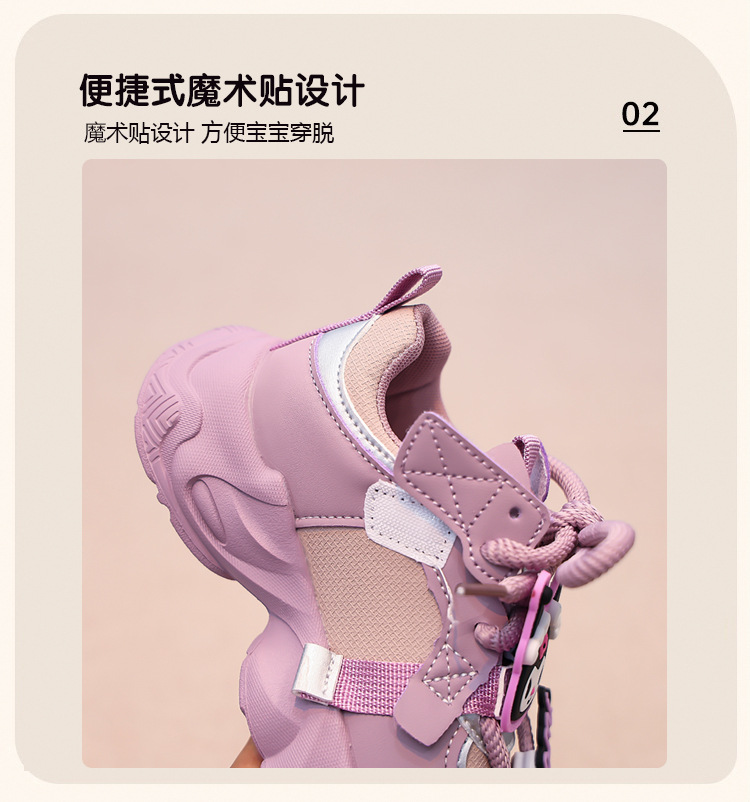 女の子の春と秋のスポーツシューズベルクロ滑り止めカジュアルシューズ 2024 子供用ランニングシューズ中型および大型子供用お父さん靴トレンディ