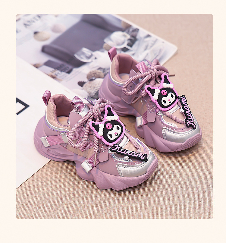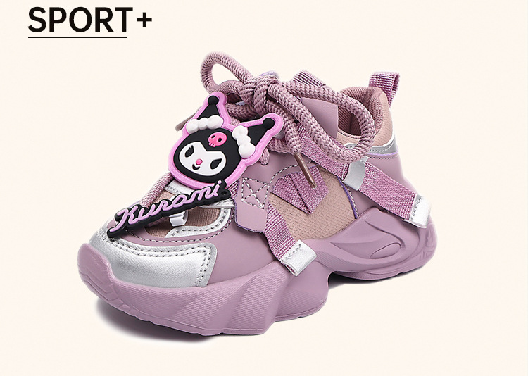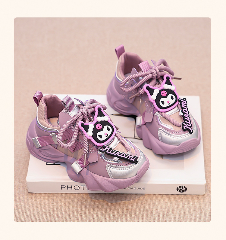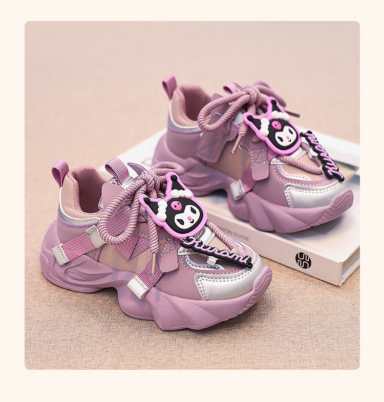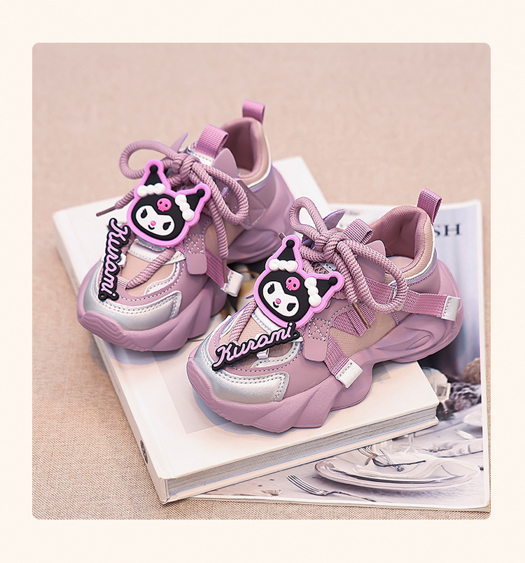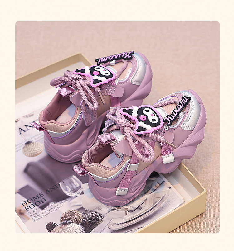 女の子の紫色のスポーツシューズのクロミガパイルのお父さんの靴は滑り止めの2024秋冬の新型の厚い底のランニングシューズを合わせます。