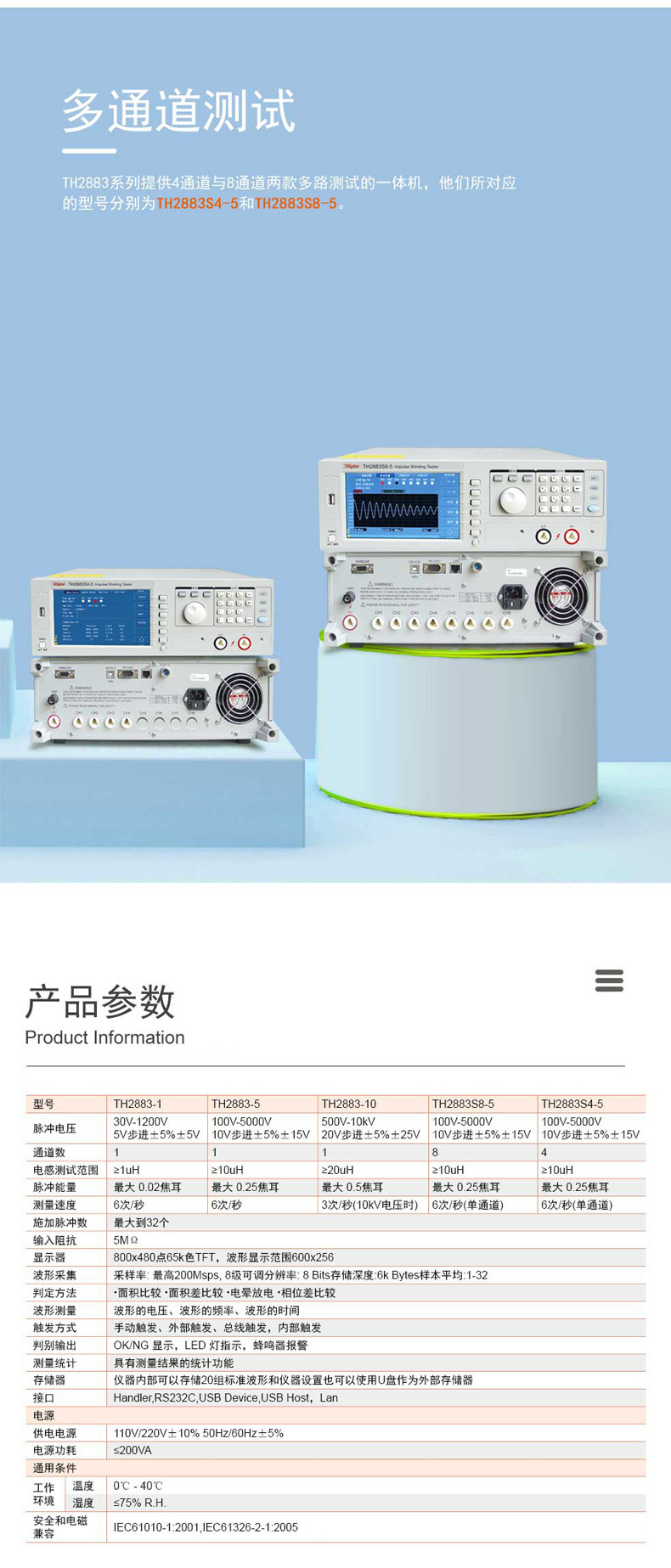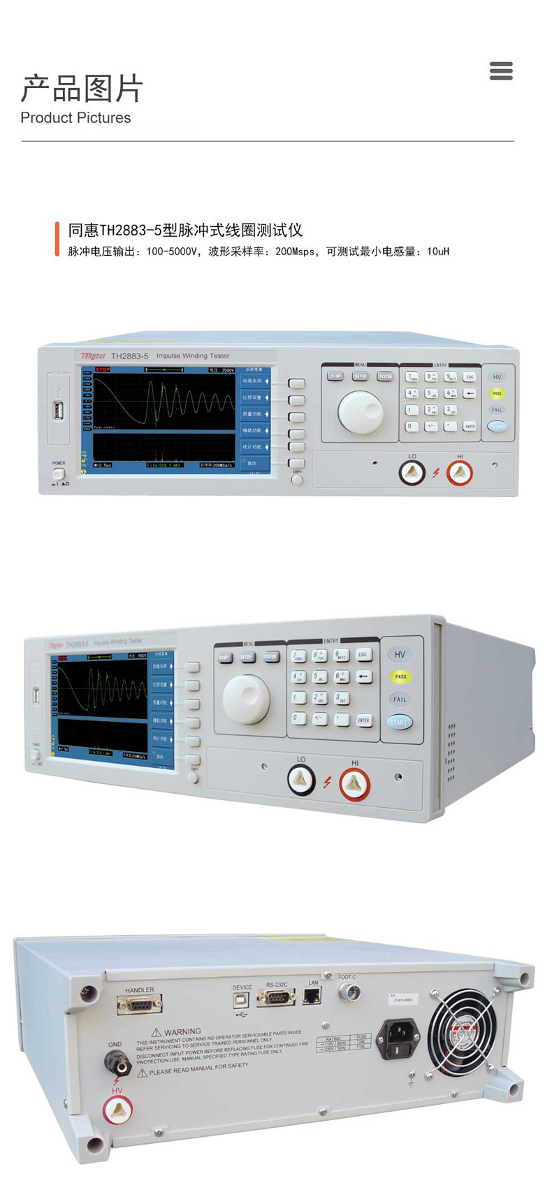 Tonghui TH2883-1/TH2883-5 単相パルスコイル巻線絶縁変圧器短絡計