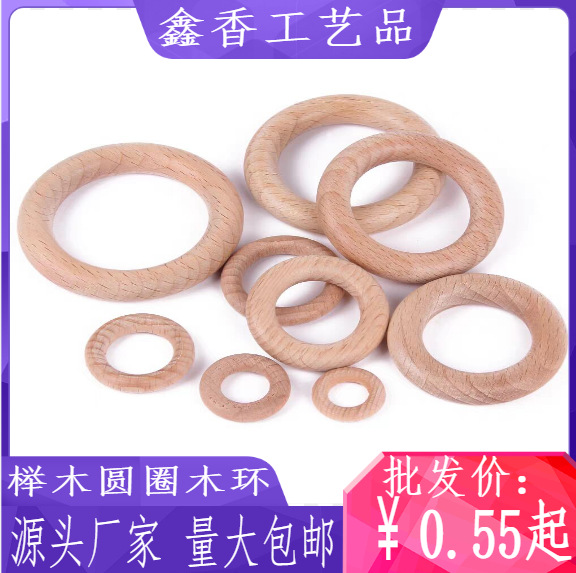 在庫あり卸売 ブナ材丸リング 赤ちゃん歯固め木製リング 無垢材アクセサリー DIY子供木製玩具一体型吊り下げリング