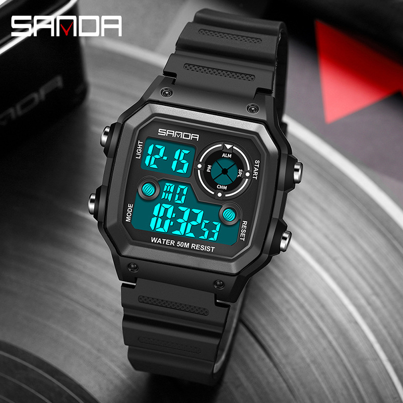 専門店の正規品腕時計多機能角型単芯鋼帯電子時計ファッション運動手灯目覚まし時計ビジネス