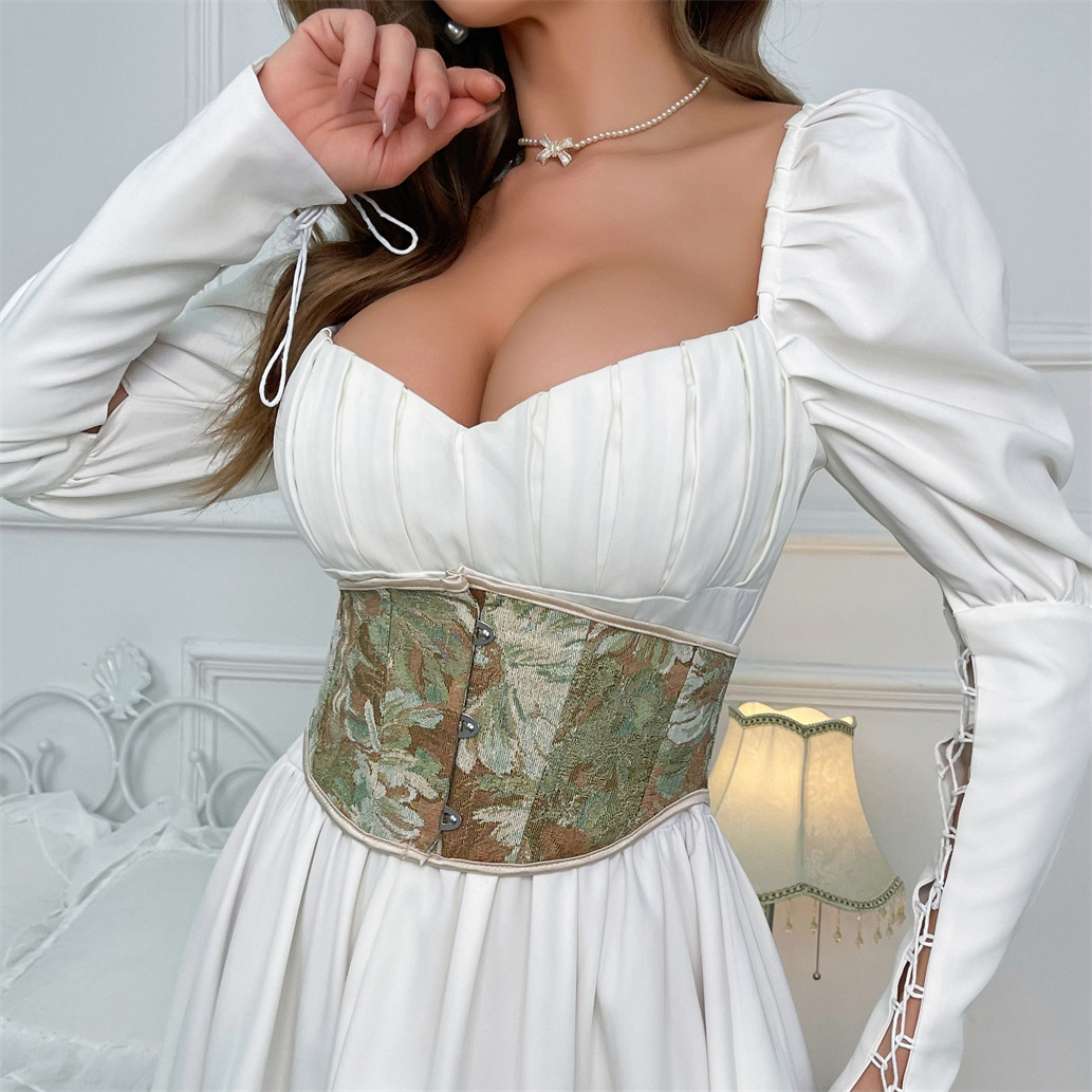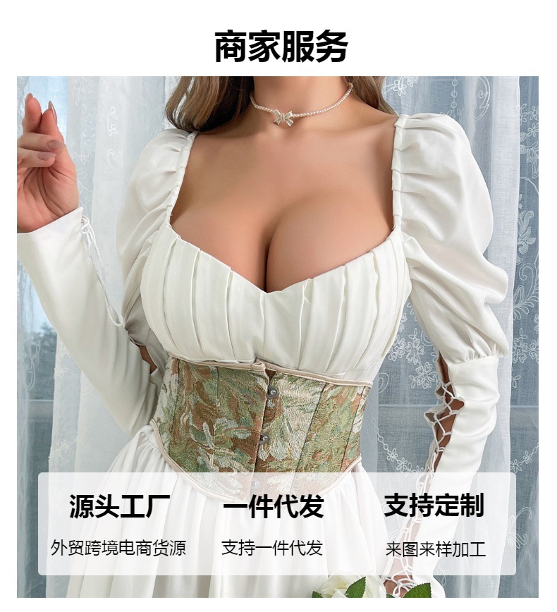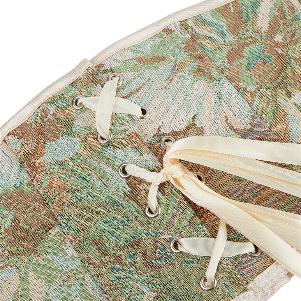 セクシーな腹部を引き締めるレトロプリントのイブニングドレス、宮廷風コルセット、ウエストシェイプ、4列ボタン、後ろに紐で結ぶボディシェイプトップ