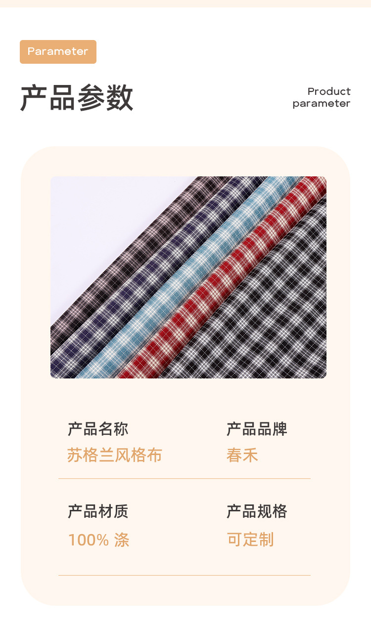 四季通用ポリエステル色織スコットランド風格子生地女子シャツワンピースJKファッション服生地