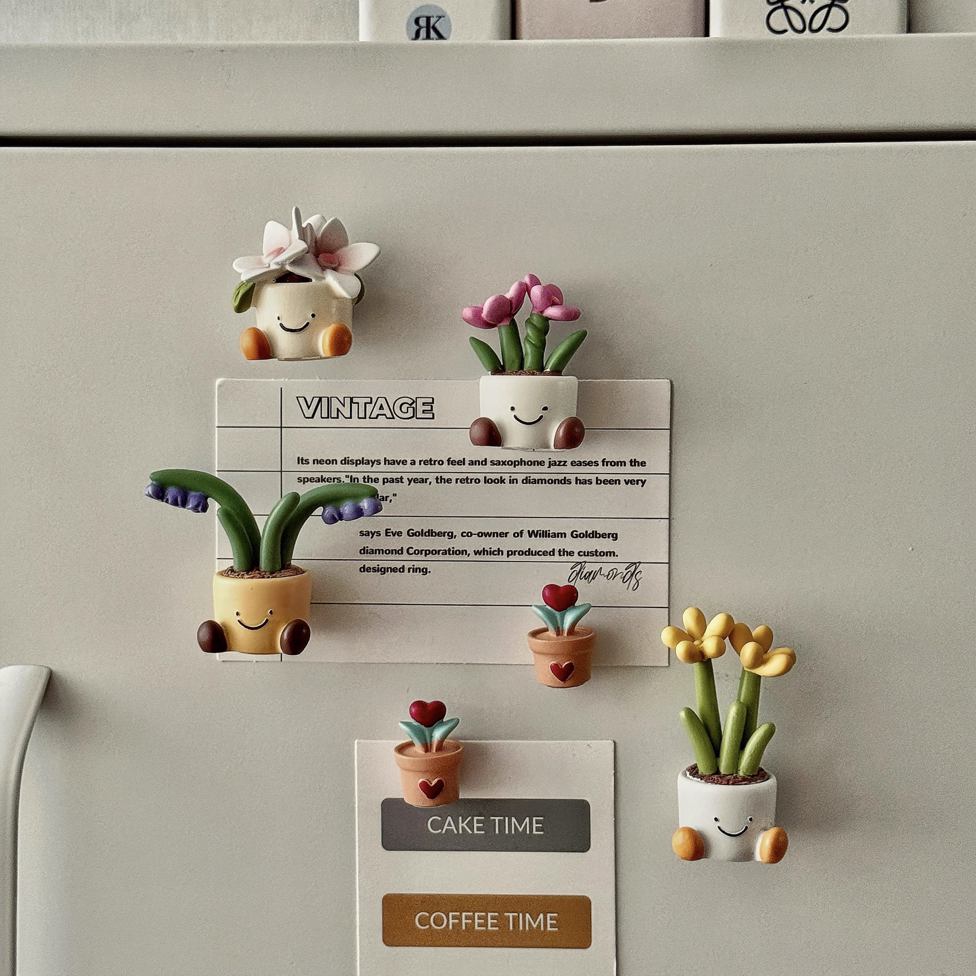韩国笑脸花朵盆栽磁吸冰箱贴表情桌面车载摆件烘焙装饰树脂备忘贴
