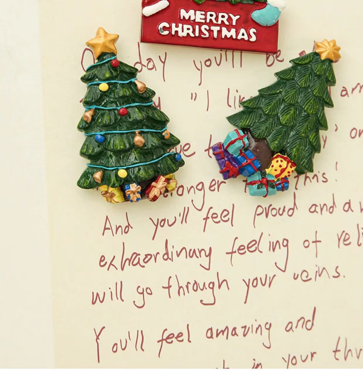 圣诞节圣诞树冰箱贴磁贴创意可爱氛围装饰留言帖入户门贴立体卡通