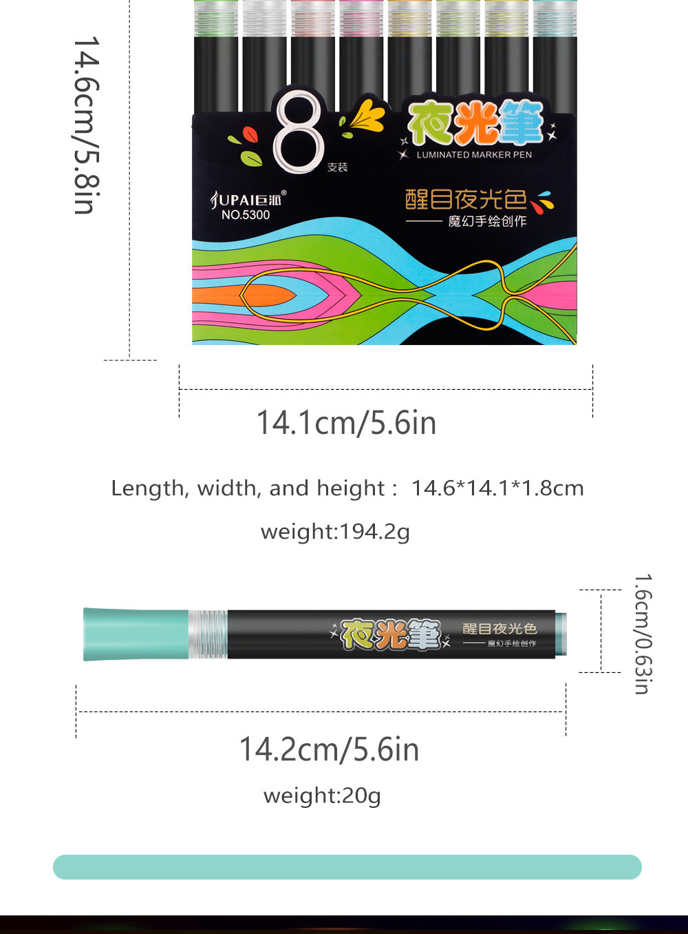 巨派カラー夜光ペン子供蛍光マーク学生創意落書き発光ペンマーカー光る蛍光ペン