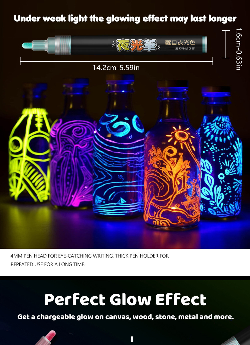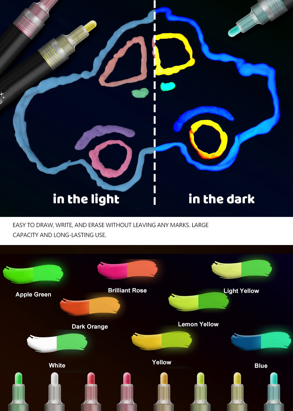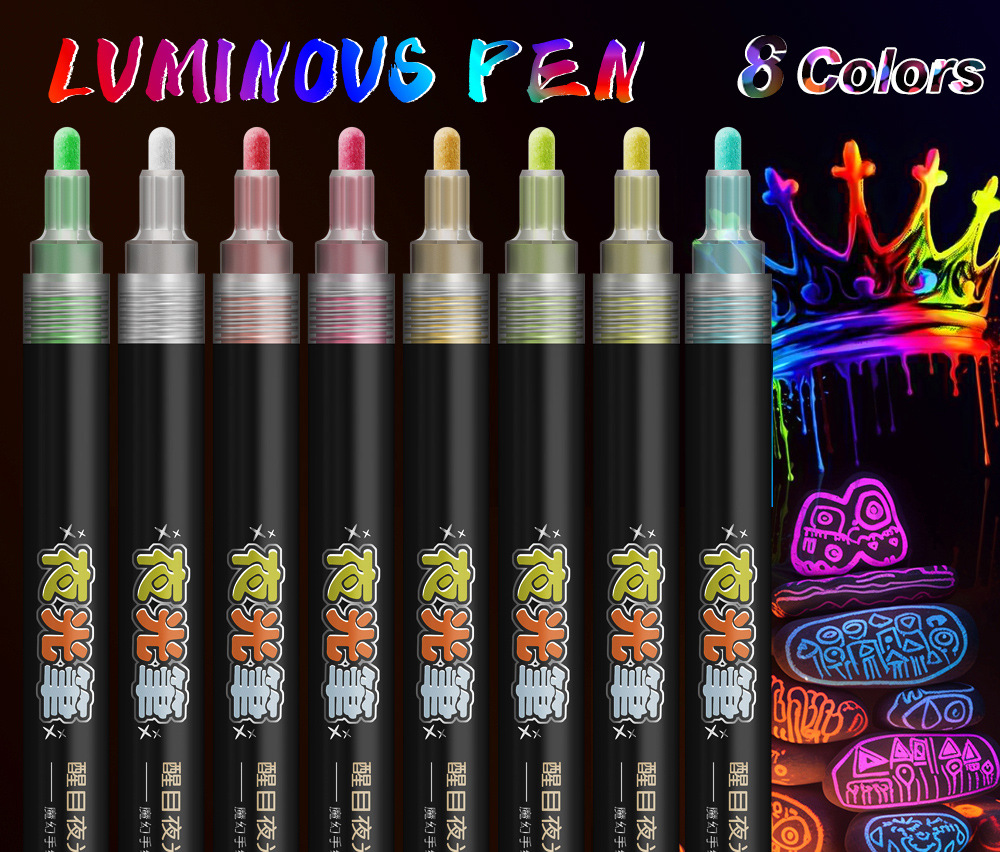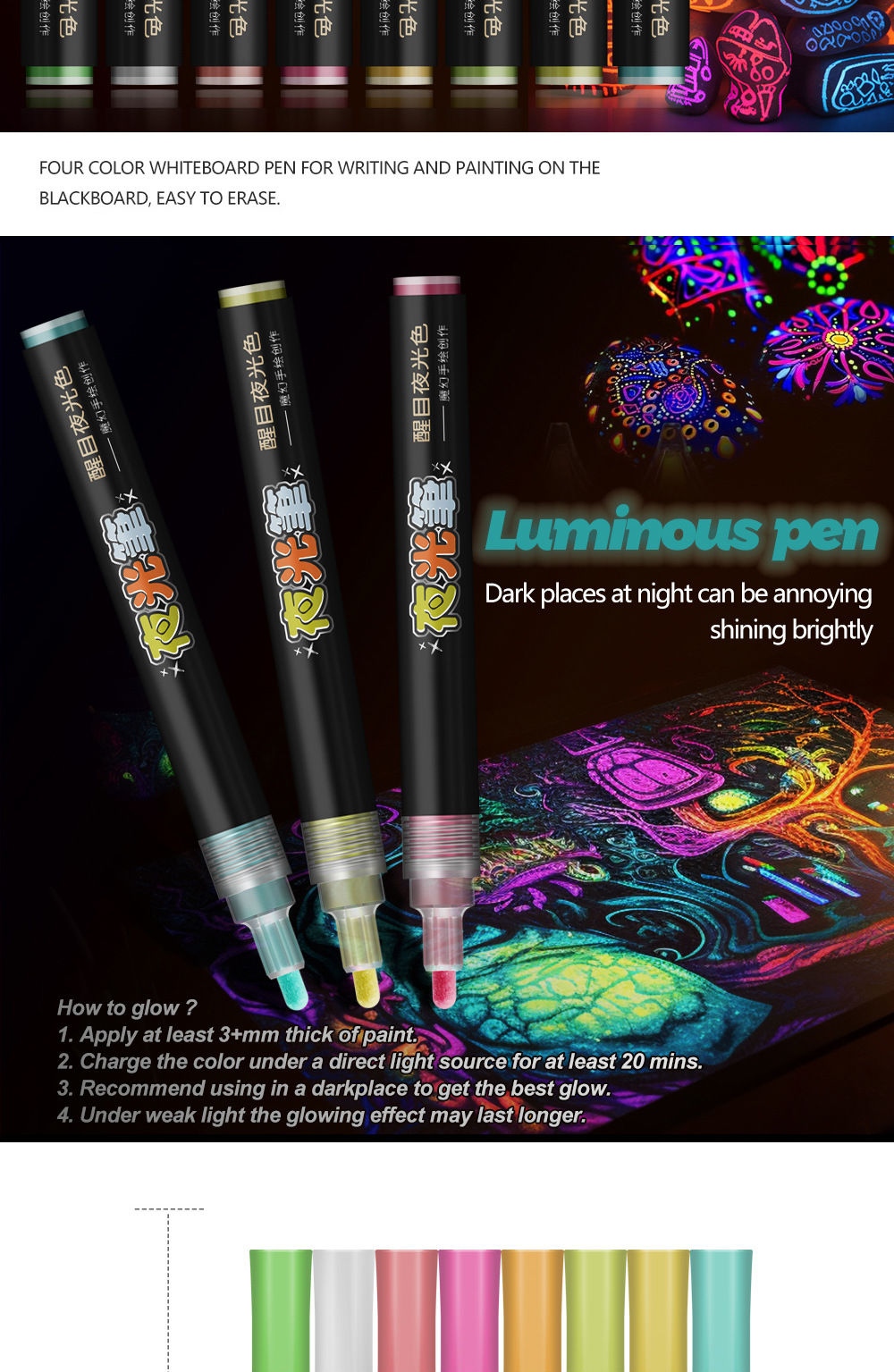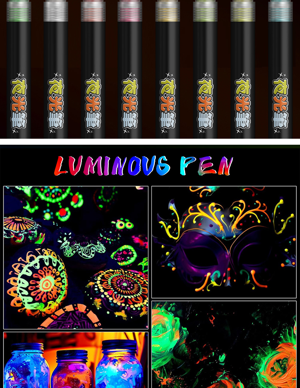 夜光丙烯马克笔儿童学生绘画发光颜料涂鸦手工创意DIY记号荧光笔