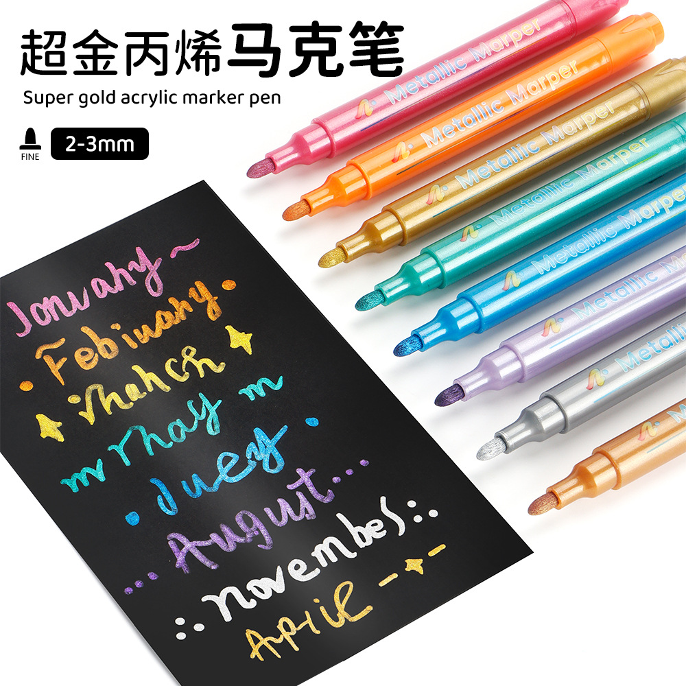 スーパーゴールドアクリルマーカーペン高光沢ペイントペンモデル着色グリーティングカード diy ペンハードヘッド金属マーカーセット