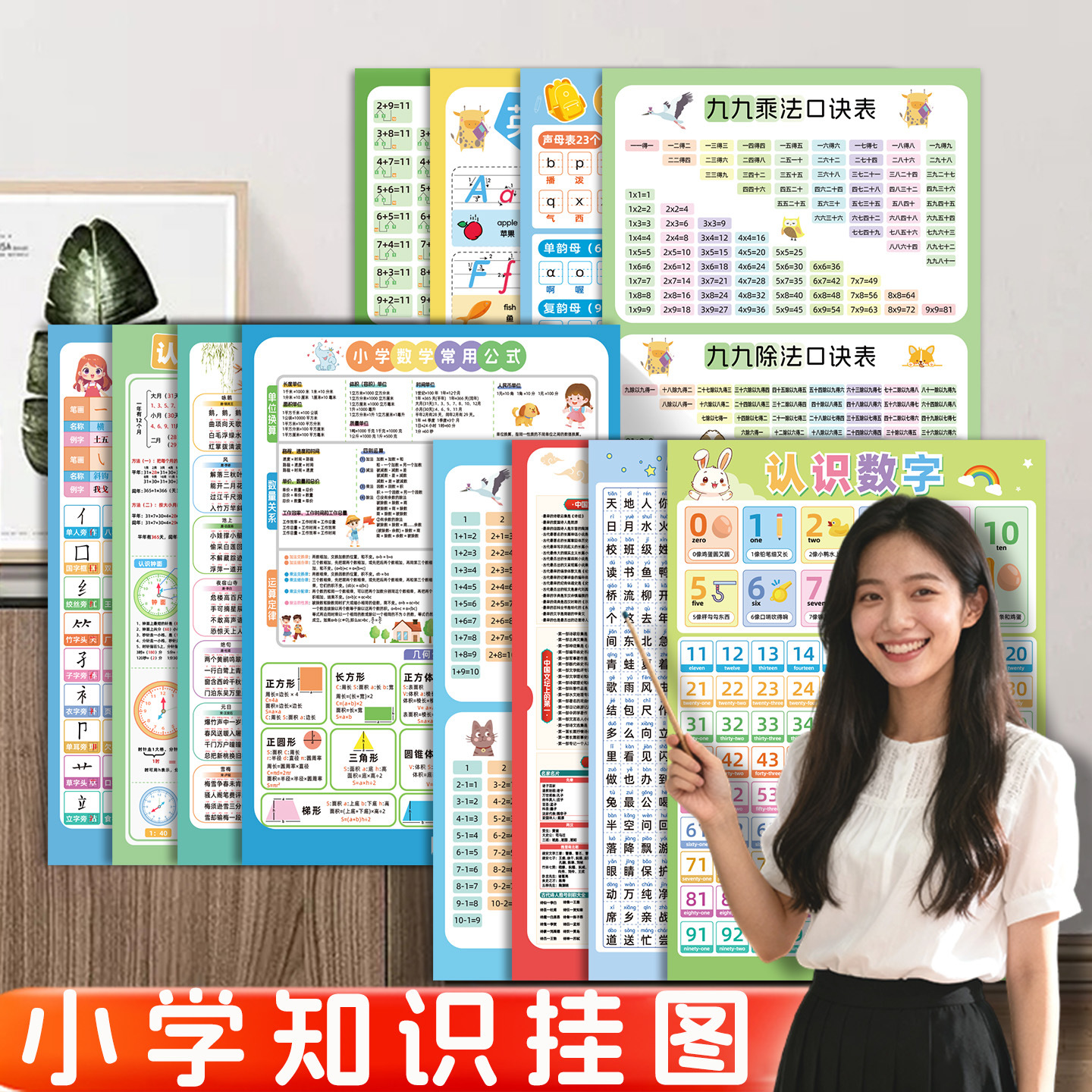 幼小衔接知识挂图数学语文英语早教墙贴高清幼儿小学通用学习
