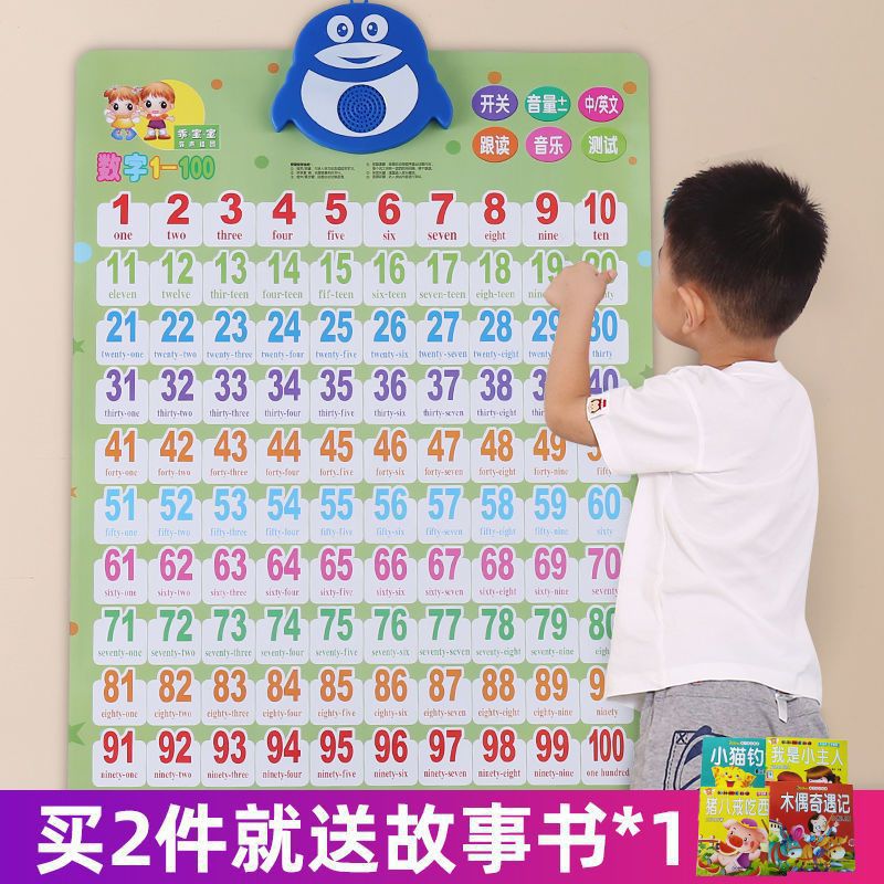 儿童数字1到100有声发声挂图启蒙贴幼儿早教拼音字母表墙