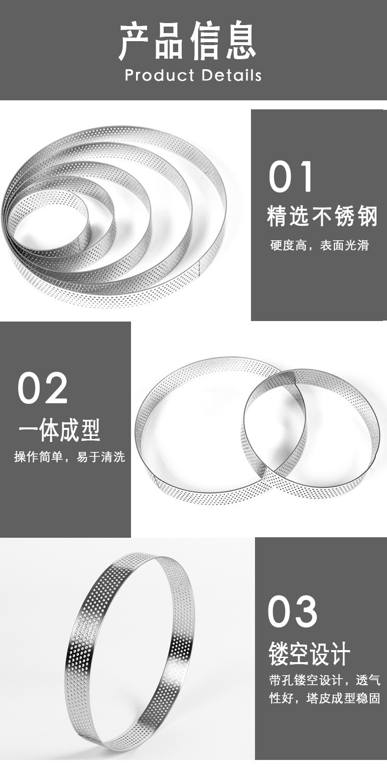 430不锈钢冲孔挞环圆形挞圈烘焙馅饼法式甜点蛋糕模多尺寸慕斯圈