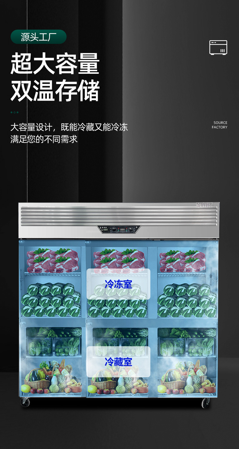 縦型冷凍庫大容量商用冷凍庫ステンレス冷蔵冷凍新鮮保持四門六門冷凍庫双温冷蔵庫