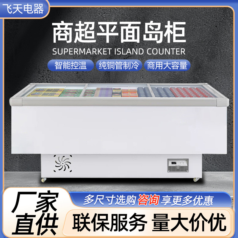 卧式平面岛柜超市组合冷冻展示柜速冻海鲜柜大容量冷藏保鲜柜
