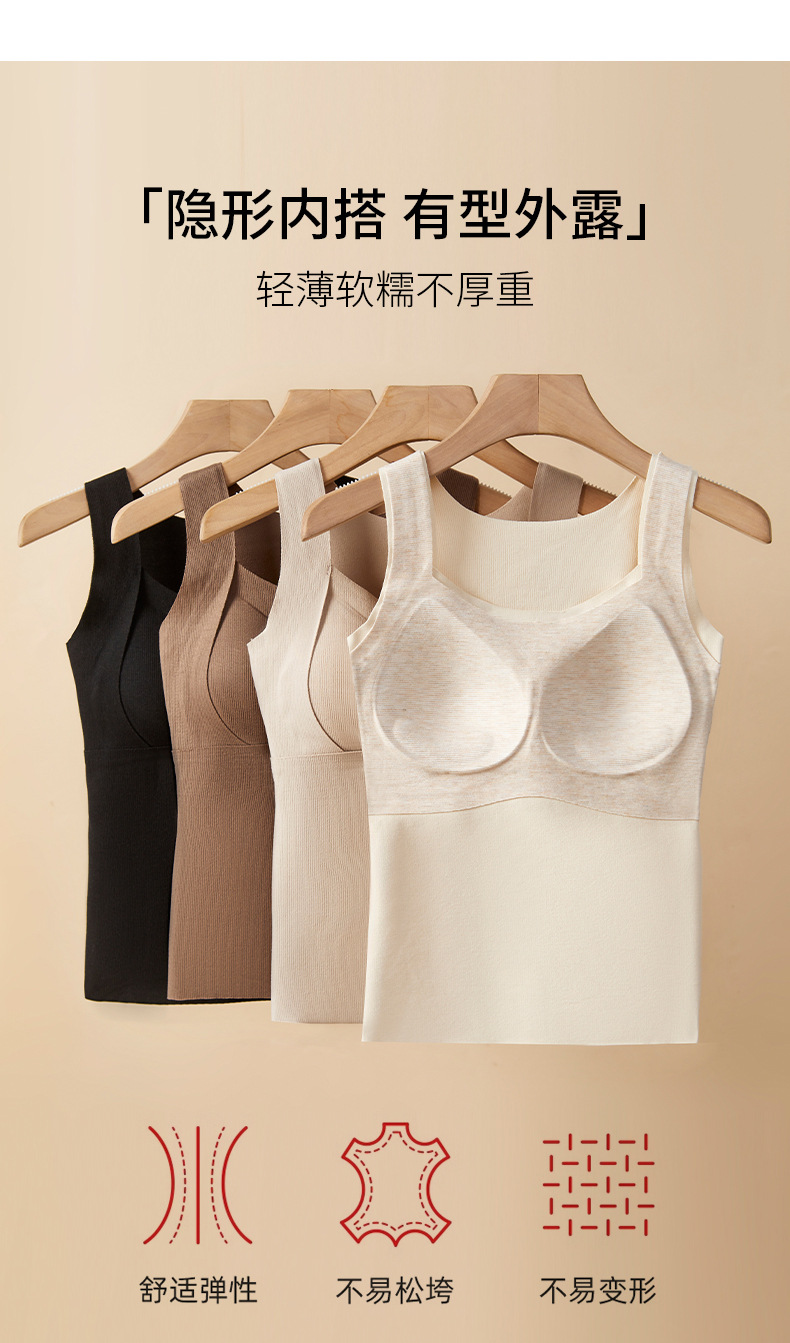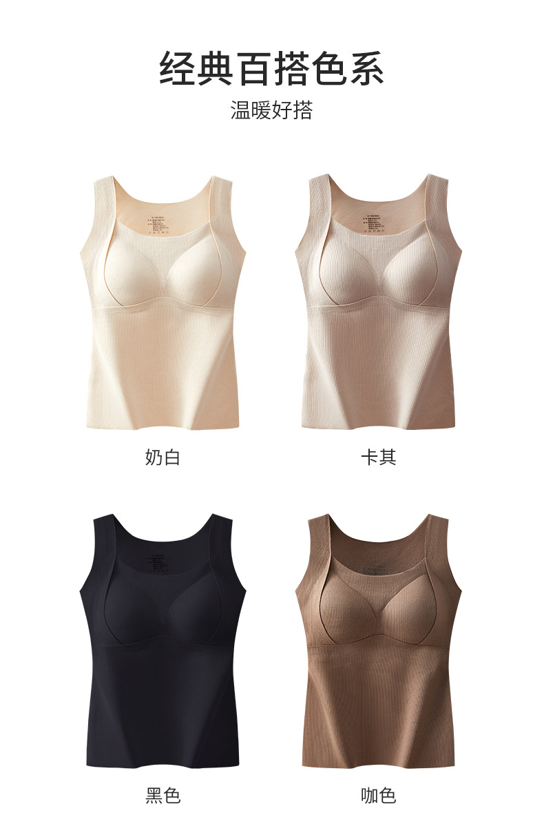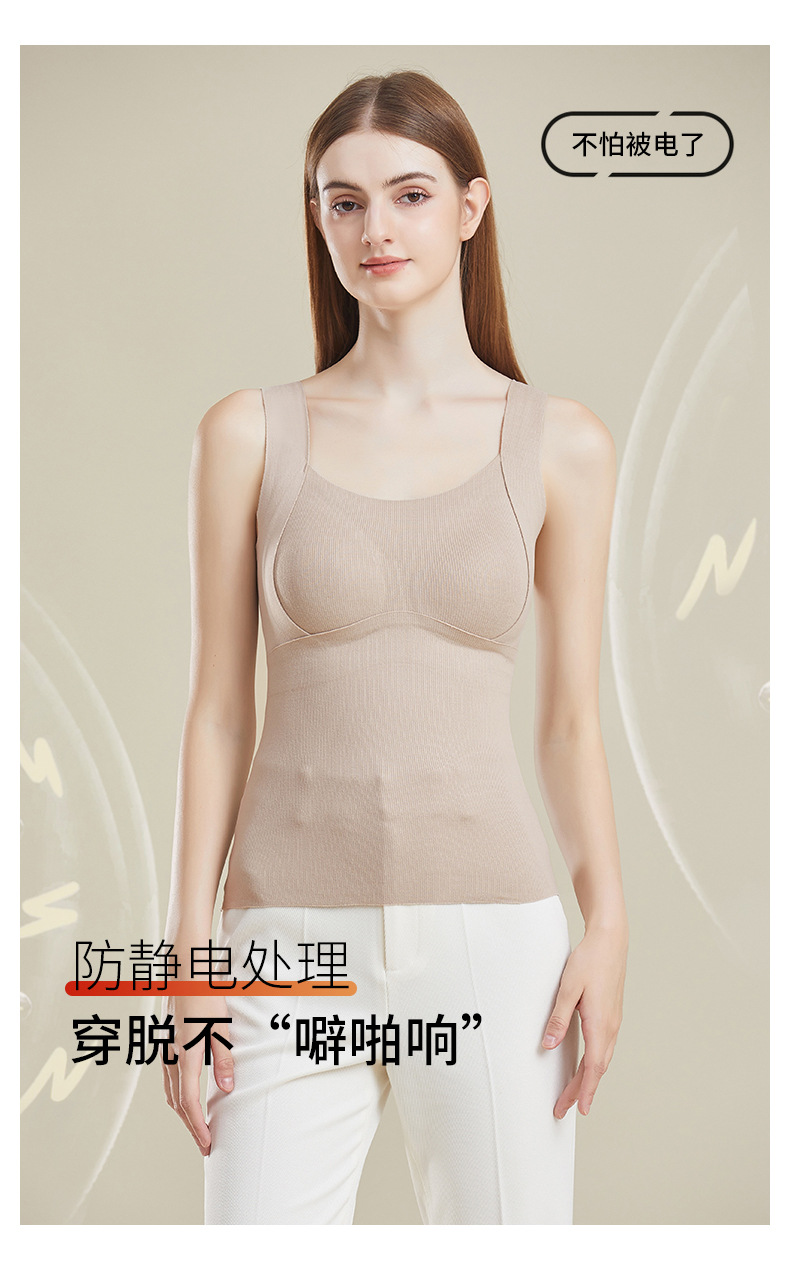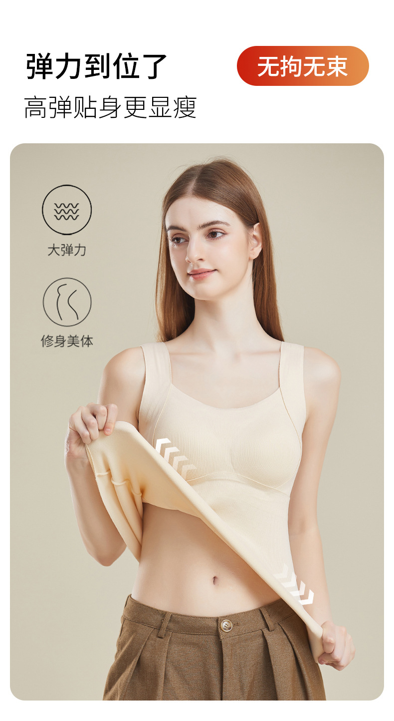 羊绒发热蚕丝无痕保暖背心一体式固定杯修身打底美体保暖马甲内衣
