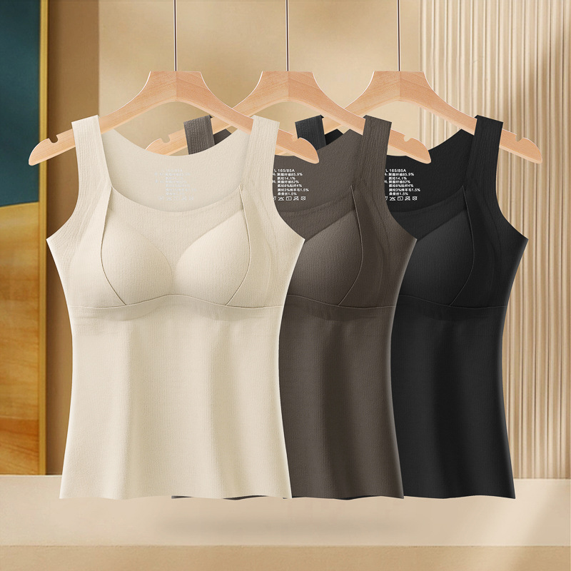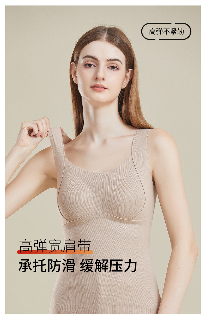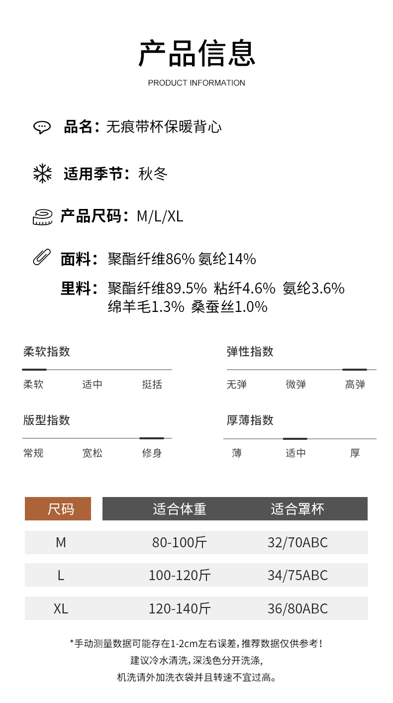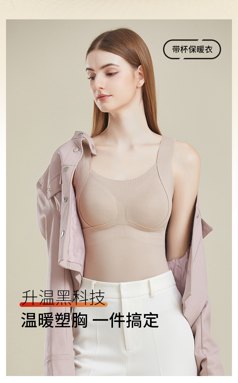 羊绒发热蚕丝无痕保暖背心一体式固定杯修身打底美体保暖马甲内衣