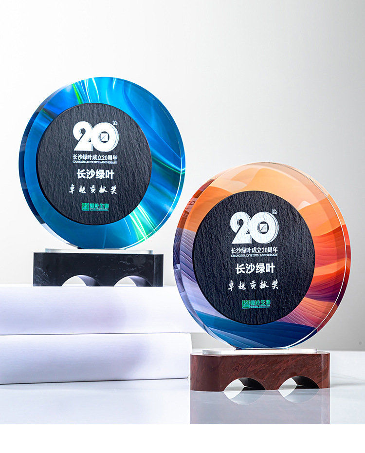大理石水晶メダル円形水晶トロフィーカラープリント優秀代理店店個人チーム授賞