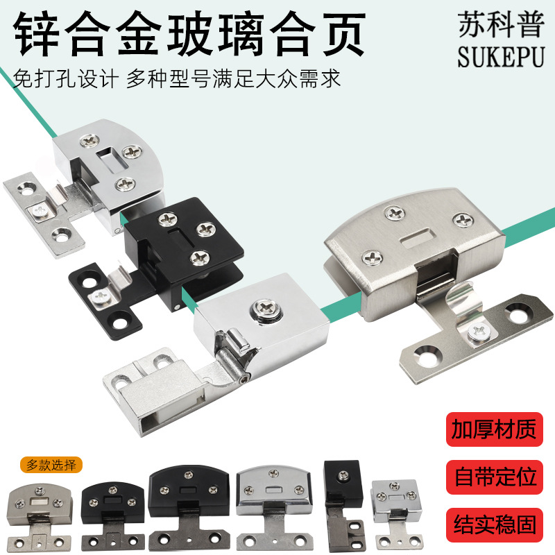 ガラスキャビネットドアヒンジ展示キャビネットアクリル接続ヒンジ穴なし木板積層板亜鉛合金固定クリップ