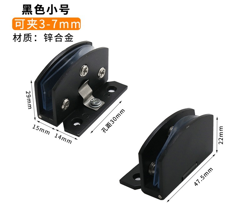 柜门夹展示柜合页玻璃柜门铰链免开孔锌合金无框玻璃配件酒柜合页