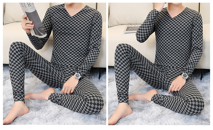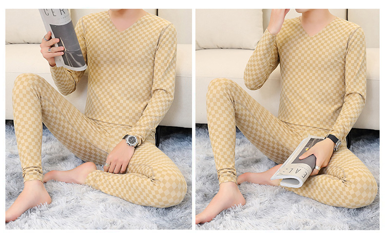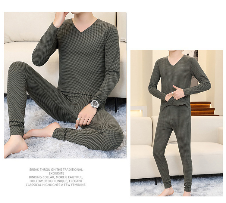 男性式の徳絨毛保温下着セットは毛を磨いています。