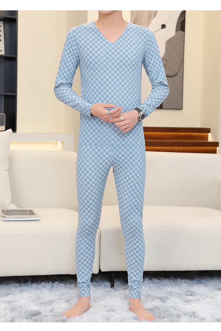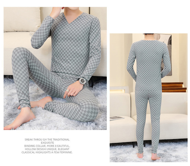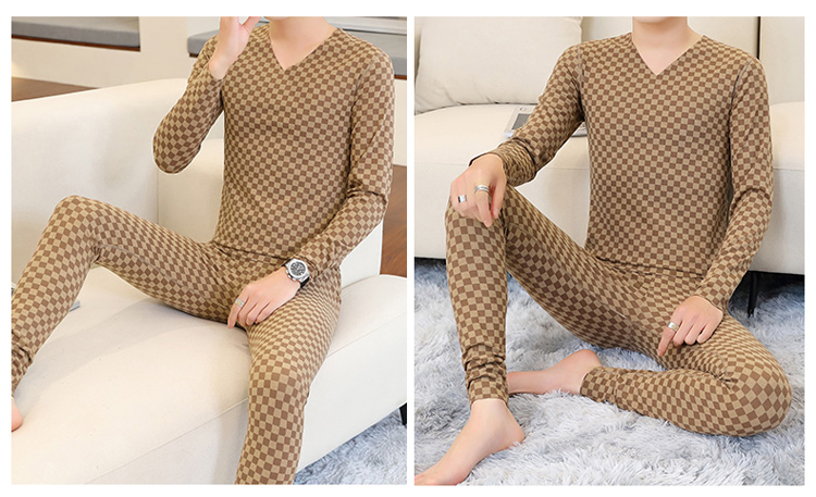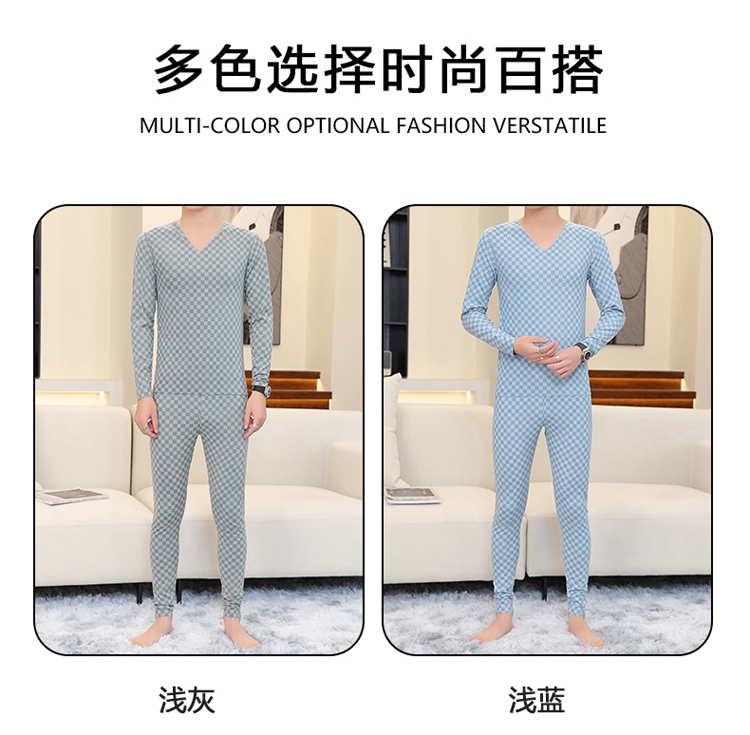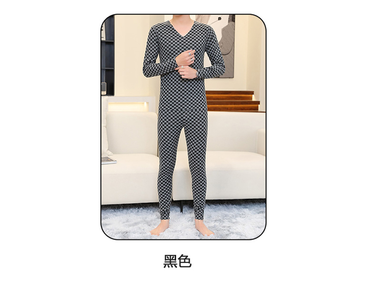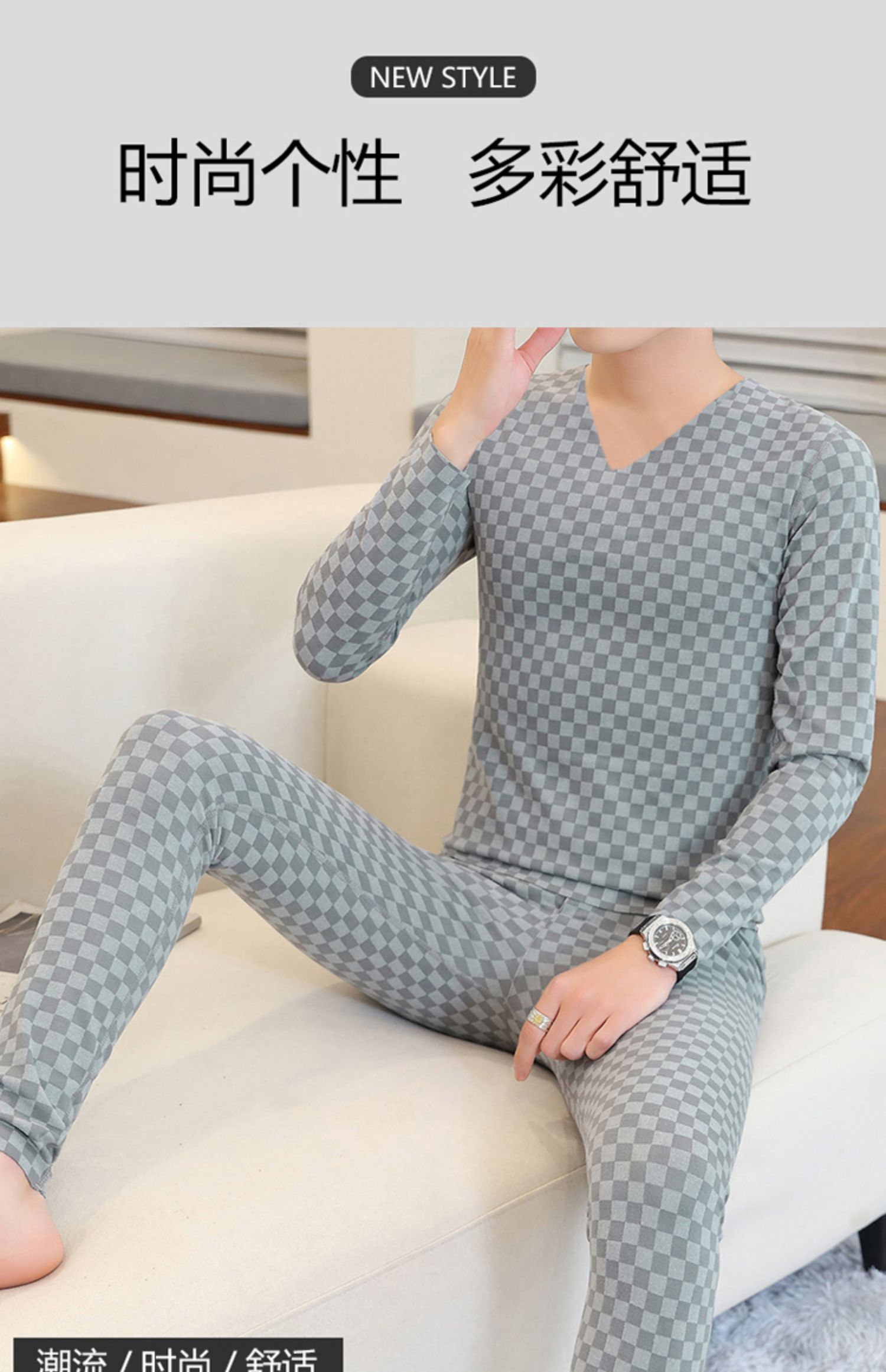 2025冬季新款保暖内衣男士v领秋衣秋裤套装印花新款打底穿卫生裤