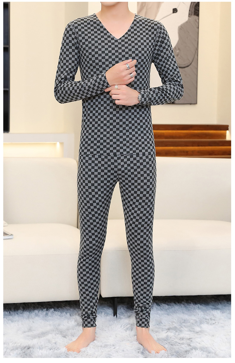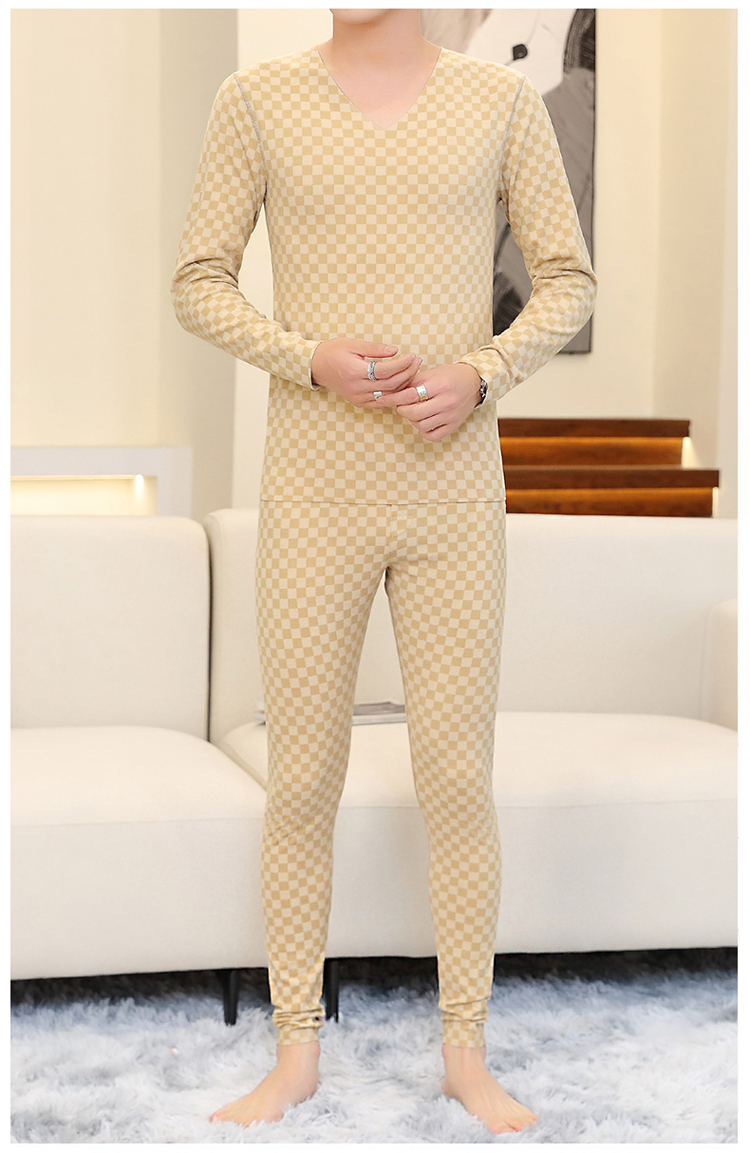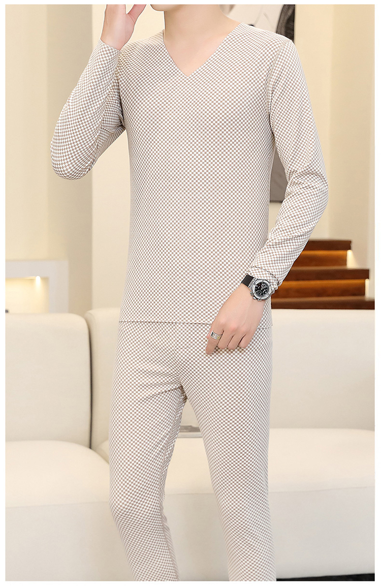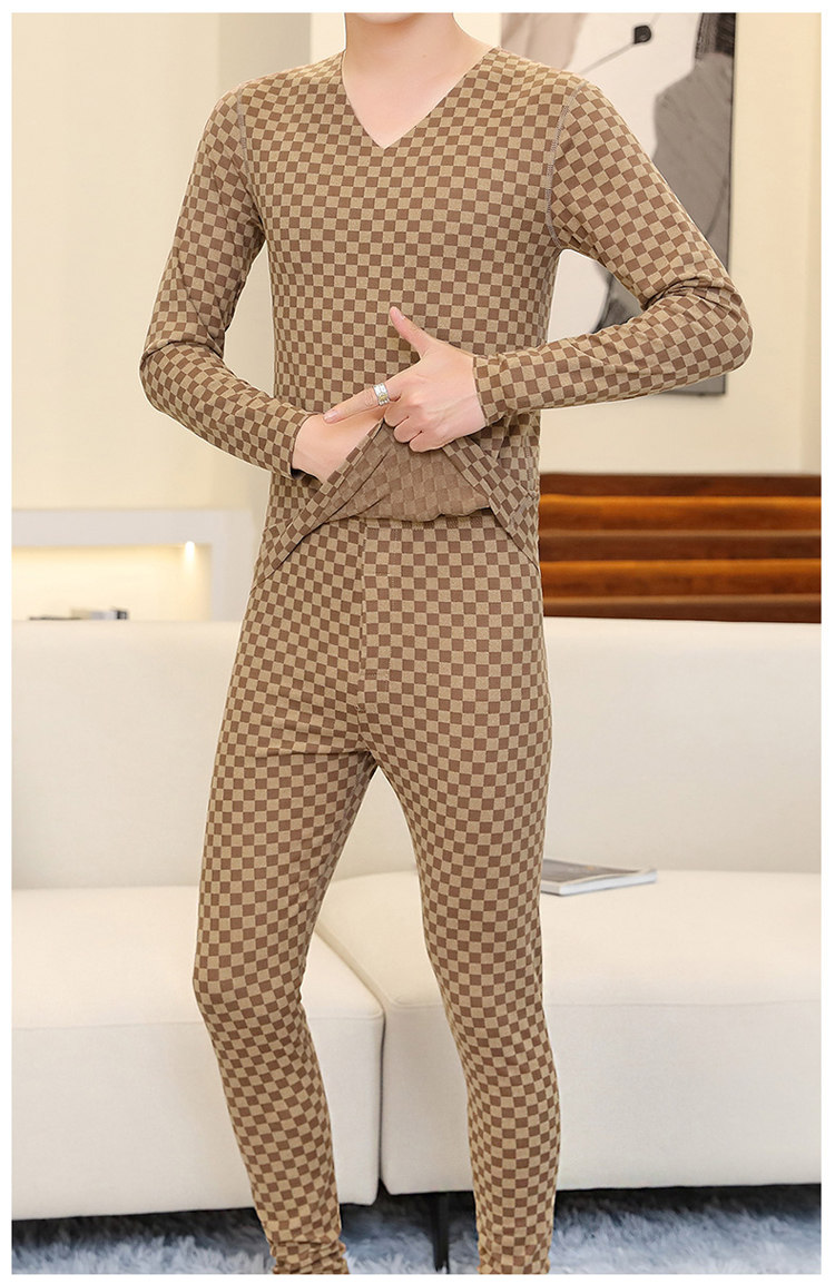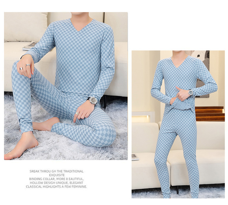 2025冬季新款保暖内衣男士v领秋衣秋裤套装印花新款打底穿卫生裤