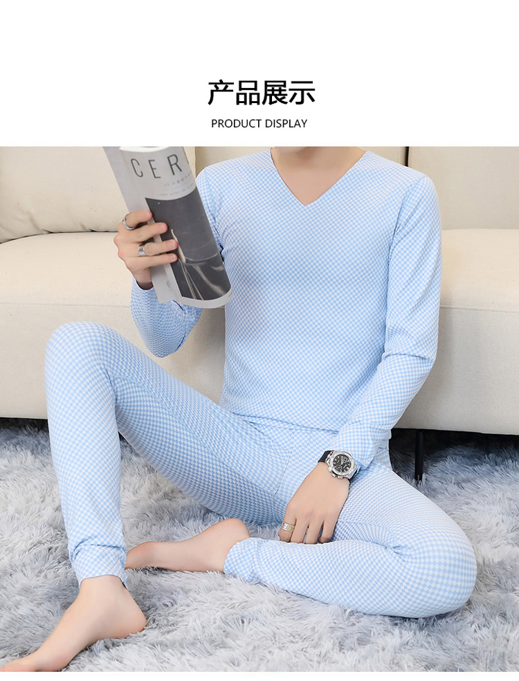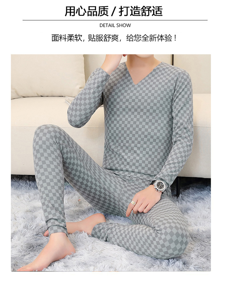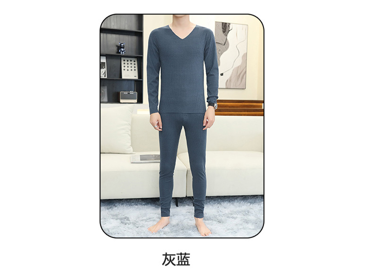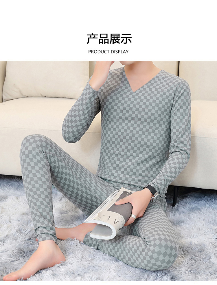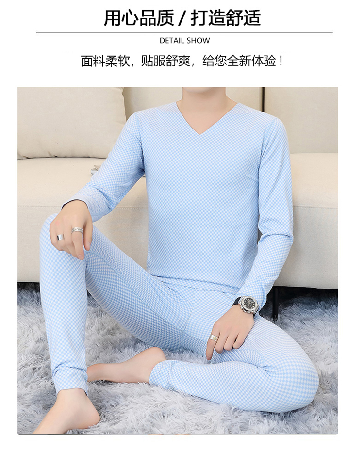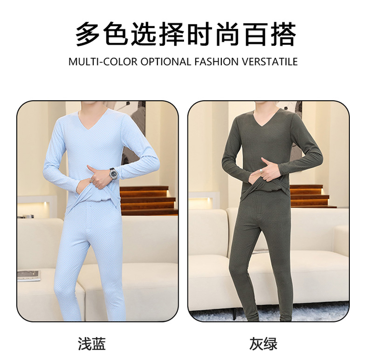 男性の保温下着の徳絨無痕vネックの肌着発熱ボトムシャツの男性タイプの青年秋衣秋ズボンセット