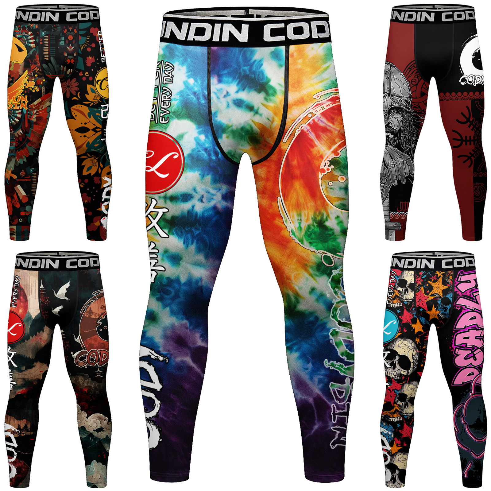 2023秋の新型フィットネスズボン男性ランニングフィットネス3dプリント圧縮タイツ運動レジャー速乾